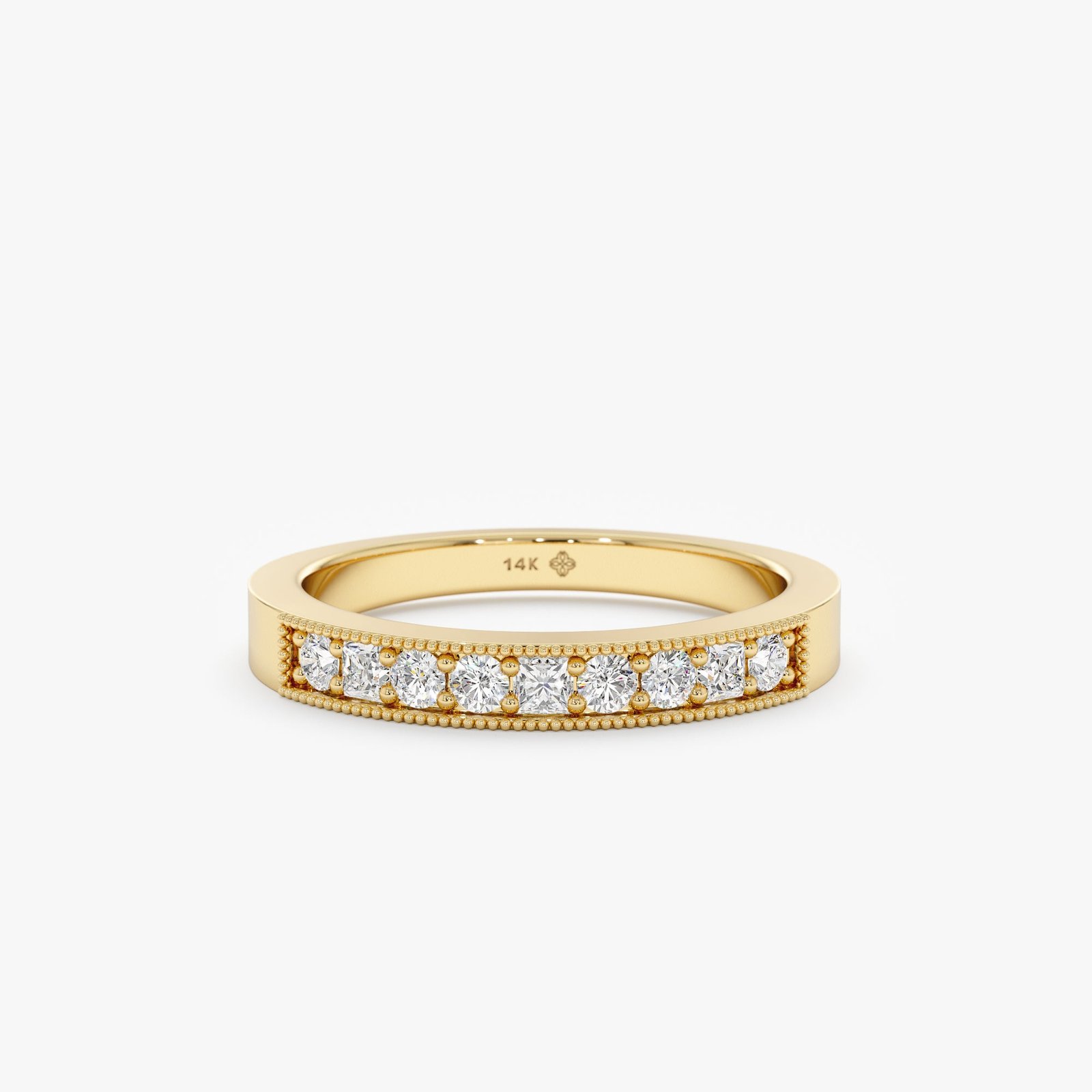 Each Baguette Band is crafted exclusively in 14K solid gold or 18K solid gold. We never use plated or gold-filled metals. Solid gold provides the strength required to secure step-cut diamonds while maintaining lasting color and structural stability. Every band carries a 14K or 18K hallmark stamp verifying purity.