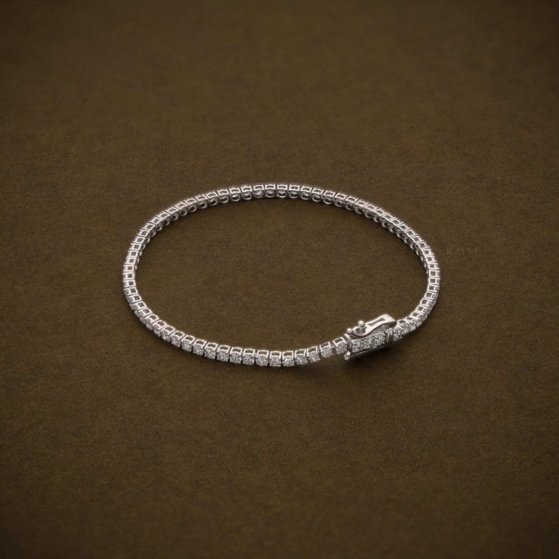 14K Solid Gold 2.66ctw 2.0mm Round Lab Grown Diamond 8 inches Classic 4 Prong Tennis Bracelet