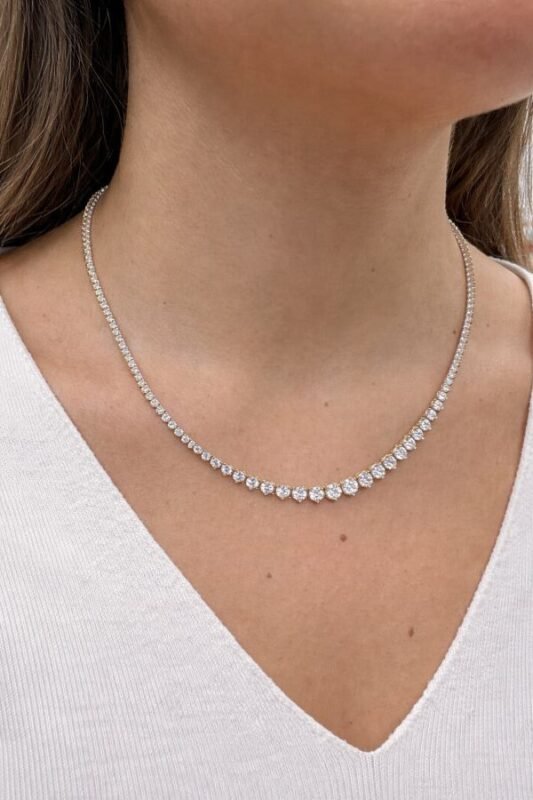 4.63ctw lab grown diamond tennis necklace in 14k solid gold with VS1 EF diamonds IGI certified ready to ship within 24 hr.