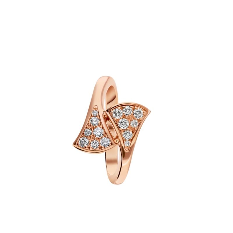 Pre-Owned Bvlgari Divas’ Dream Small Contraire Ring in 18 k Rose Gold Set with Mother of Pearl and Pavé Diamonds