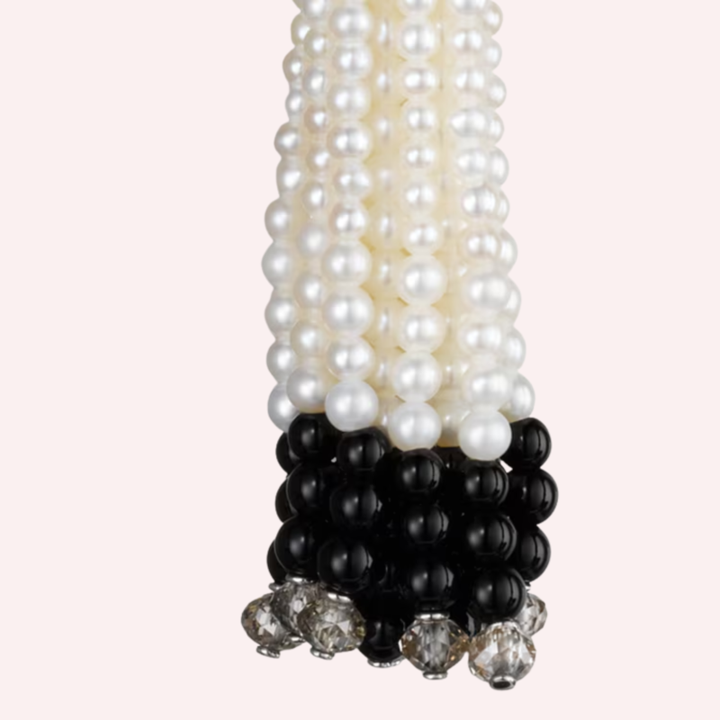 Pre-Owned Cartier Géométrie & Contrastes Necklace in 18K White Gold with Onyx, Cultured Pearls, and Diamonds