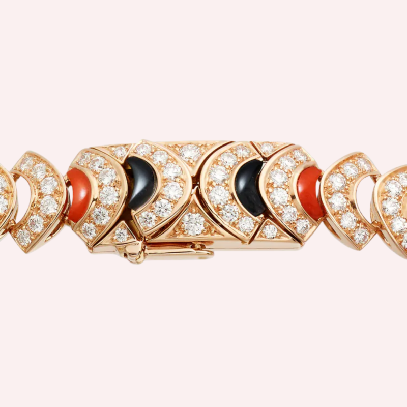 Pre-Owned Cartier Géométrie & Contrastes Coral Pavé Bracelet in 18K Rose Gold with Diamonds, Onyx, and Black Lacquer