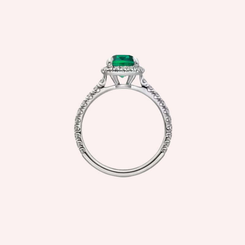 Pre-Owned Cartier Destinée Solitaire Cushion-Cut Emerald Pavé Ring in Platinum