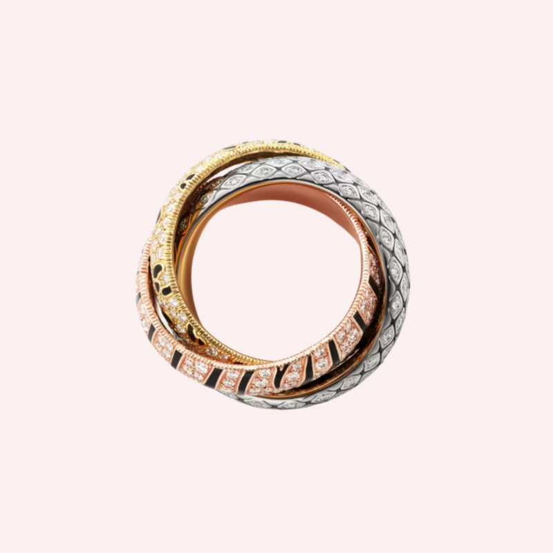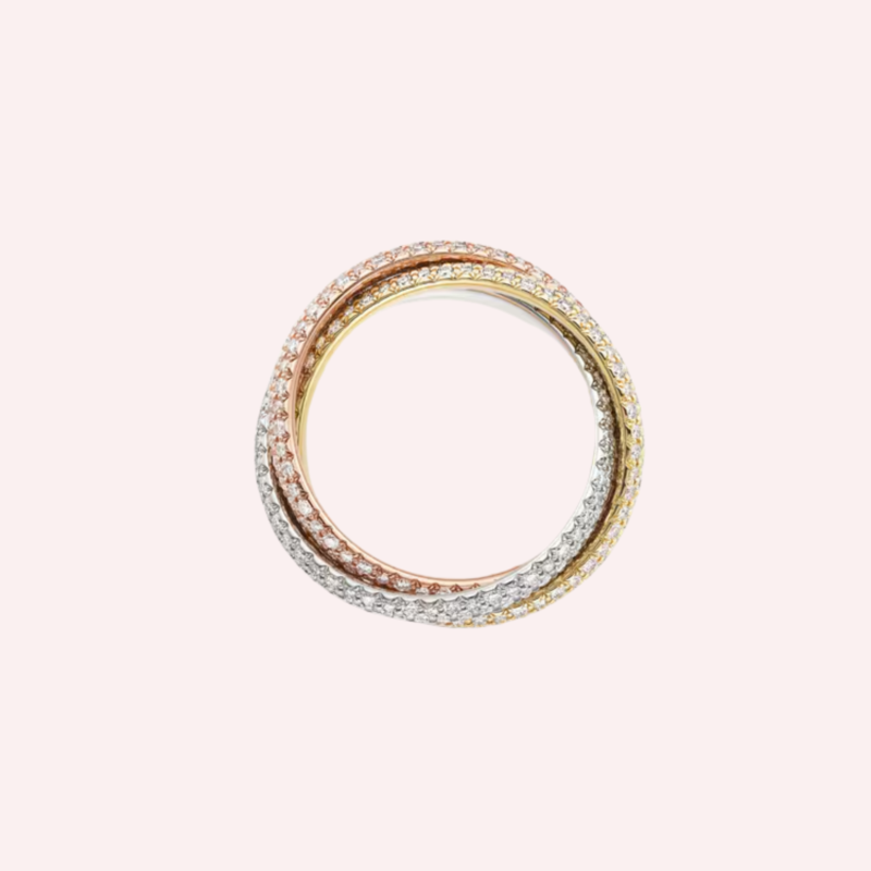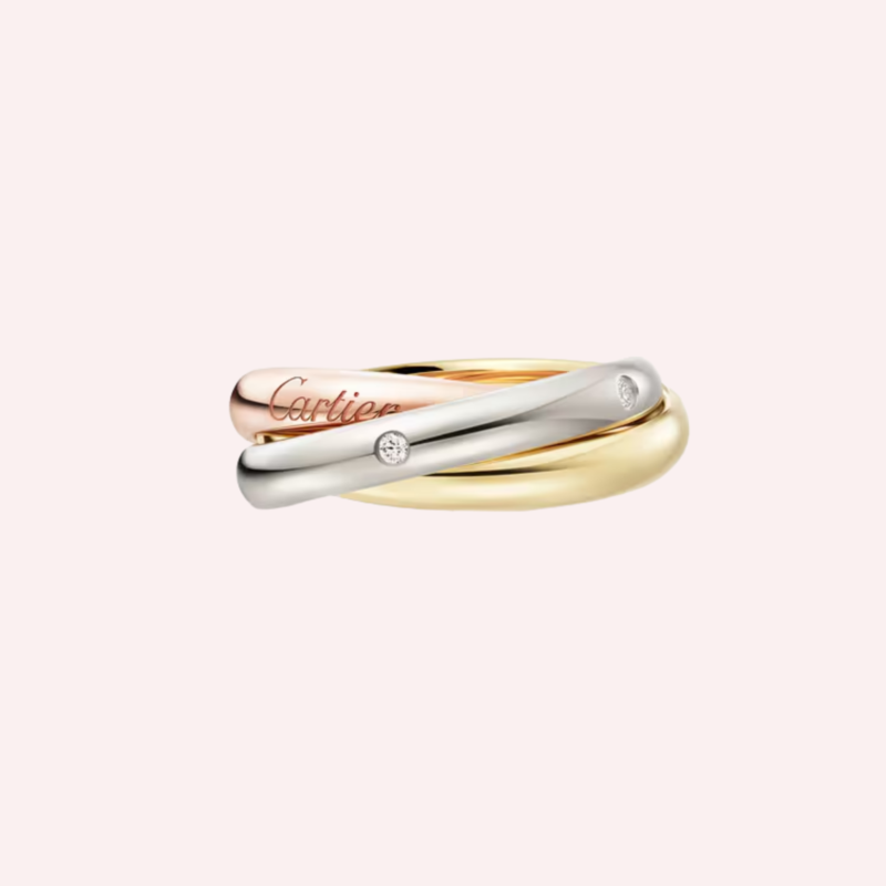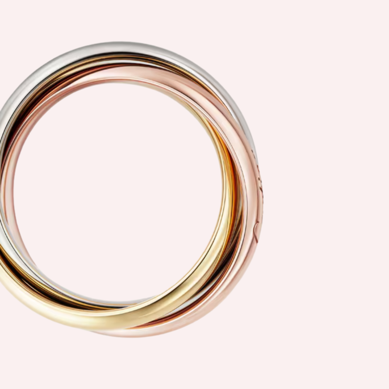 Cartier Trinity rings derive their identity from three interlinked bands, each with its own metal tone: yellow gold, white gold, and rose gold. This interplay creates a visual harmony that feels balanced, expressive, and meaningful without relying on elaborate ornamentation.