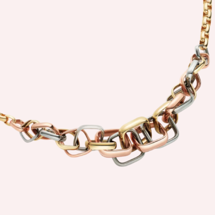 A pre-owned Trinity cushion-shaped extra-large necklace in 18K white, rose, and yellow gold, offering a bold interpretation of Cartier’s iconic design.