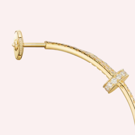 Pre-Owned Cartier Juste un Clou large pavé hoop earrings in 18K yellow gold, set with 176 brilliant-cut diamonds totaling 1.26 carats.