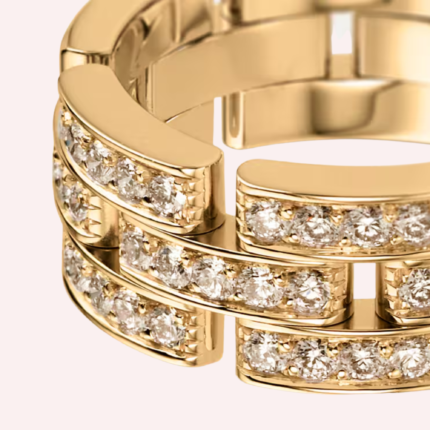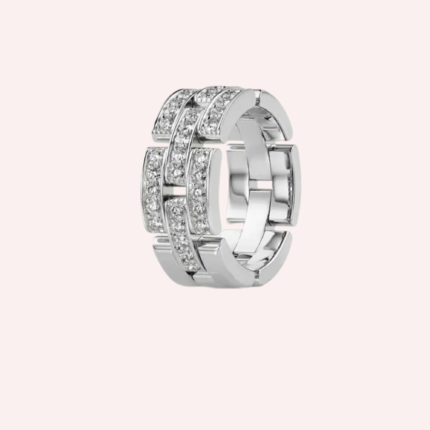 A Pre-Owned Maillon Panthère triple-row ring in 18K white gold, half-pavé set with brilliant-cut diamonds totaling 0.53 carat.