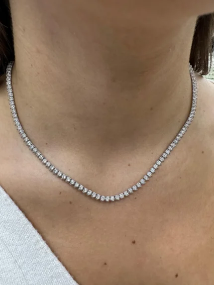 14K Gold 103.96ctw 6.20mm Round Lab Diamond 28 Inches 4 Prong Tennis Necklace