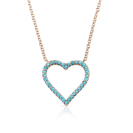 The Large Natural Diamond Heart Necklace in 14K solid gold features a beautifully designed heart pendant with dazzling diamonds. BIS Hallmarked, available in white, rose, and yellow gold.