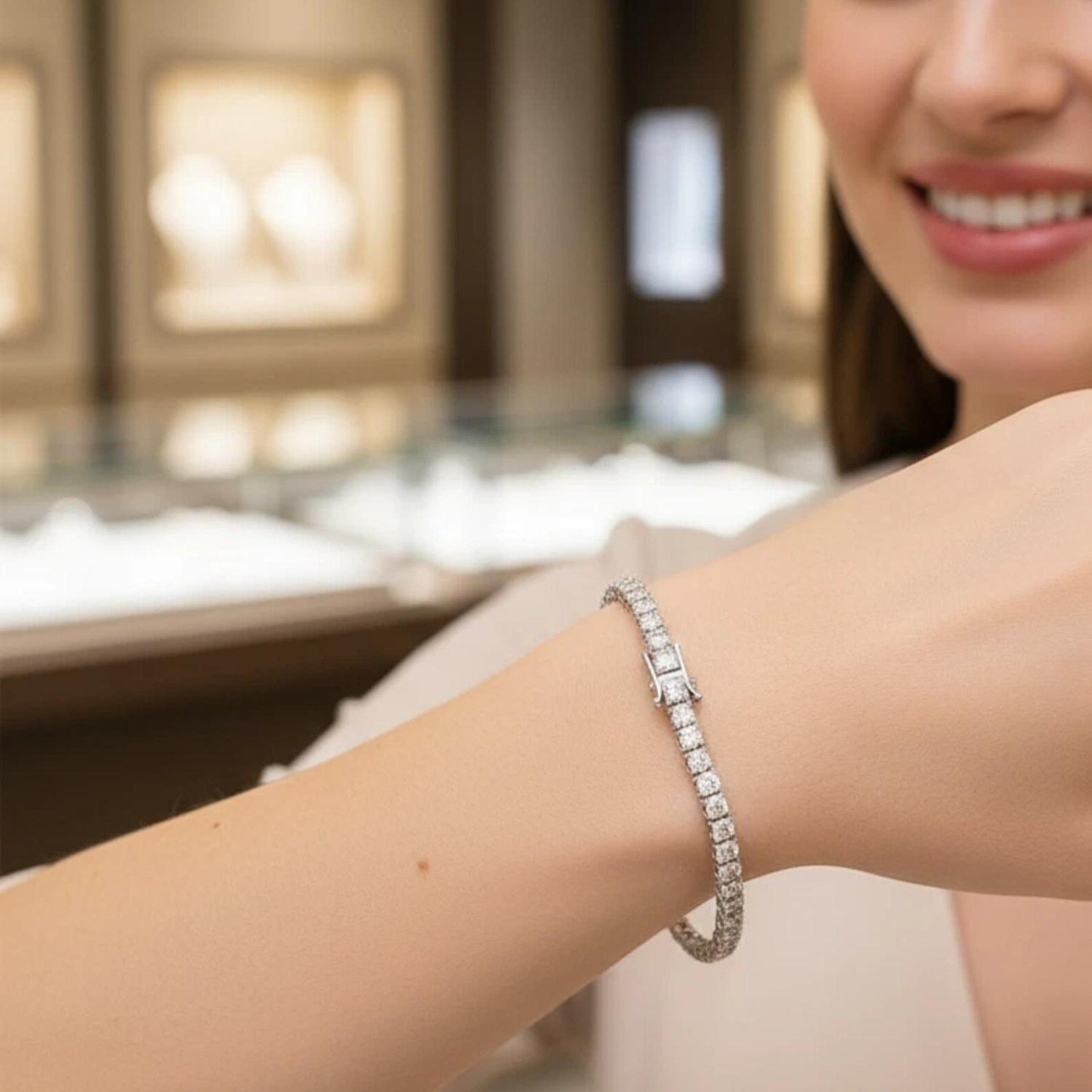 This length allows a natural shift on the wrist without feeling loose. The bracelet doesn’t stay locked in one position—it moves slightly, allowing the diamonds to interact with light more dynamically. The 4 prong setting frames each stone with light precision, maintaining clarity while keeping the overall design extremely lightweight. With 1.30mm diamonds, reflection remains soft and controlled, creating a smooth, gentle shimmer.