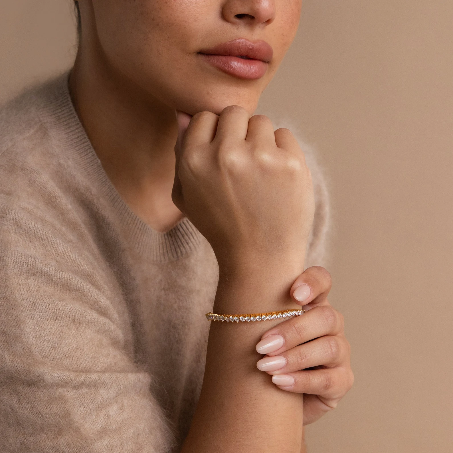 - It works confidently as a standalone piece due to its diamond size, while also layering naturally with watches or additional bracelets thanks to its relaxed length.