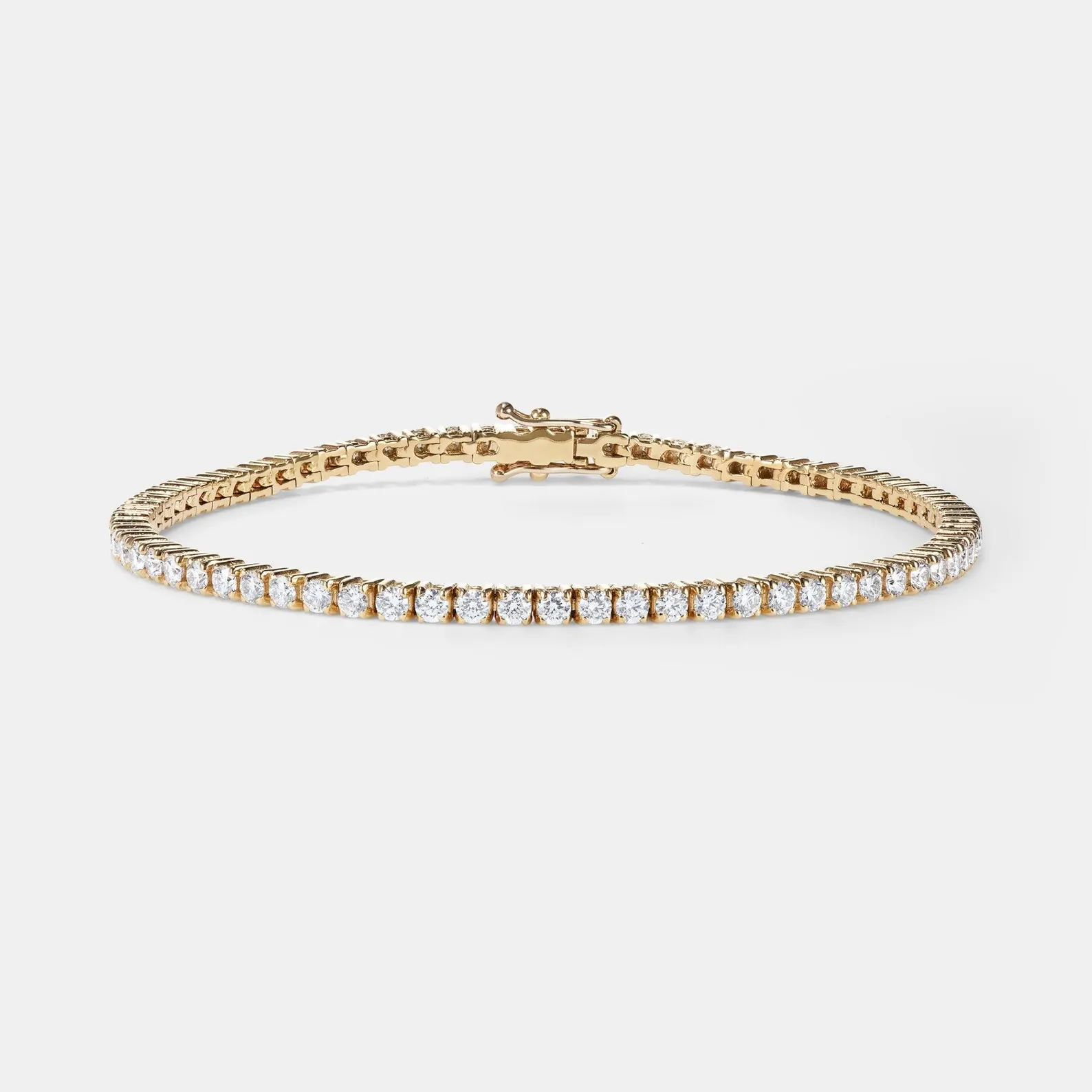 With this added length, the bracelet transitions from structured to fluid. It begins to drape naturally, allowing each diamond to reflect light from multiple angles as the wrist moves. The 4 prong setting frames every stone with precision, enhancing clarity while maintaining a lightweight build. With 3.20mm diamonds, reflections are deeper and more intense, creating a powerful, high-impact shimmer across the bracelet.