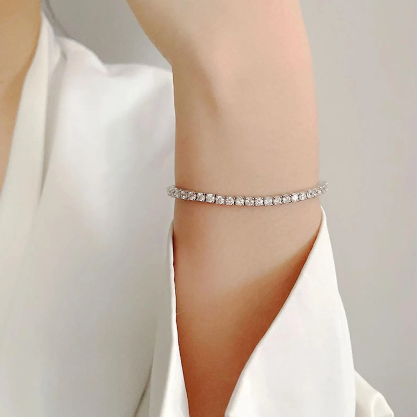 - The 3.00mm diamonds deliver a bold and highly dominant visual presence, forming a strong diamond line across the wrist. Combined with the 4 prong setting, each diamond is clearly defined, enhancing separation and clarity. Light reflection is deeper and more intense, creating a powerful, high-impact shimmer that immediately draws attention.