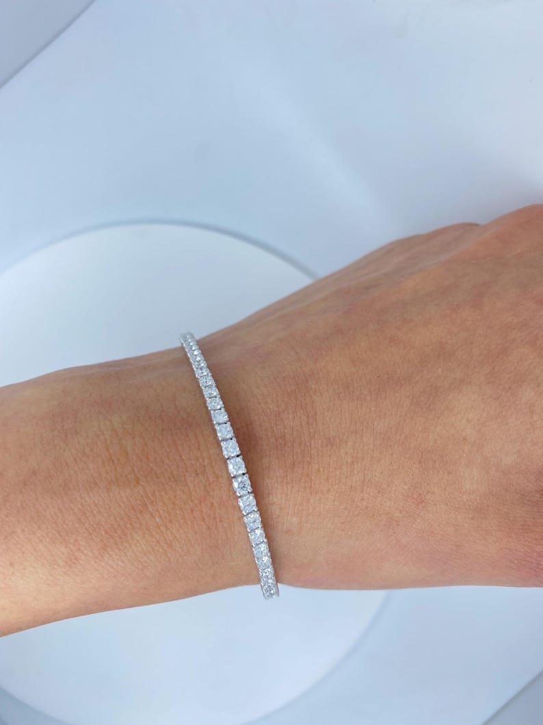 - The 2.4mm diamonds form a thicker, more dominant line of brilliance, while the 4 prong setting allows light to enter from multiple angles. This produces a brighter, stronger sparkle that stands out immediately on the wrist.