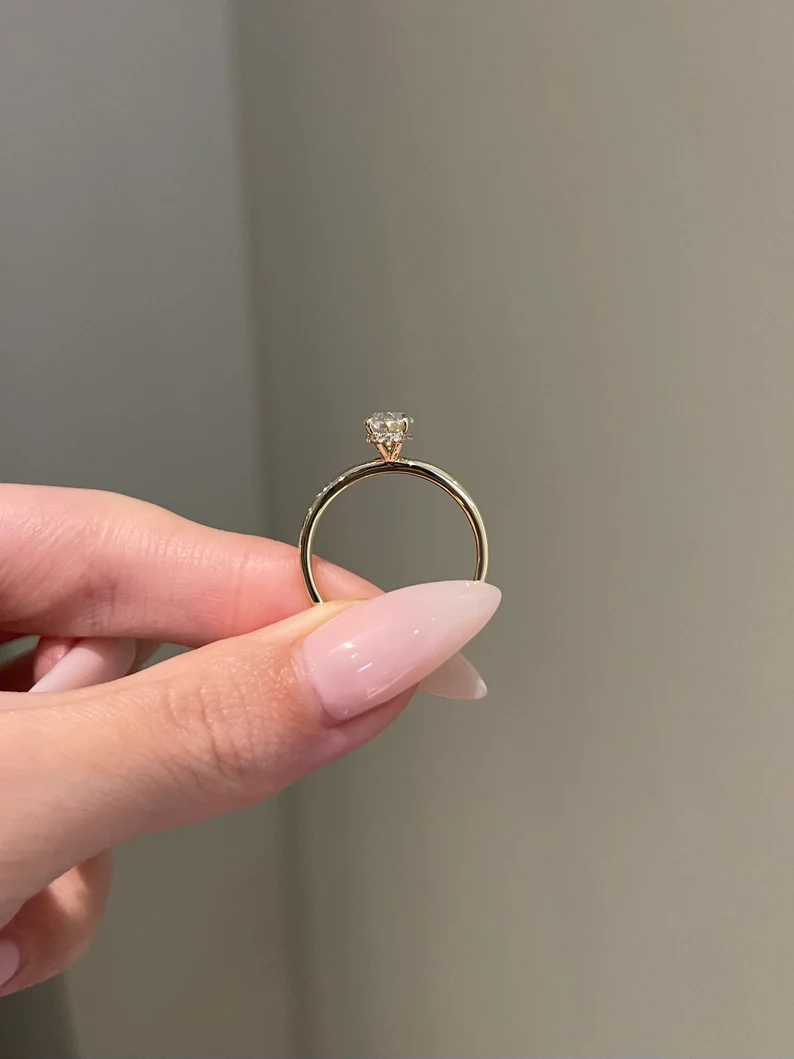 This 2 carat brilliant oval cut moissanite solitaire engagement ring offers graceful brilliance and refined simplicity—ideal for a romantic, timeless moment.