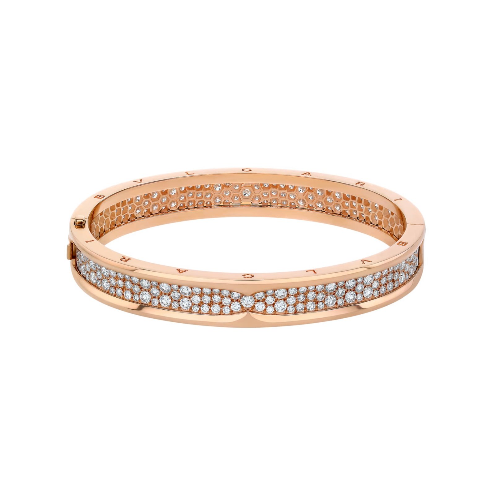 Crafted in 18K rose gold, the bangle bracelet is set with pavé diamonds on the spiral, enhancing its architectural silhouette with radiant brilliance. Channeling the timeless aesthetics of Roman architecture, the design unites bold structure with contemporary elegance, embodying the unmistakable spirit of the Maison.