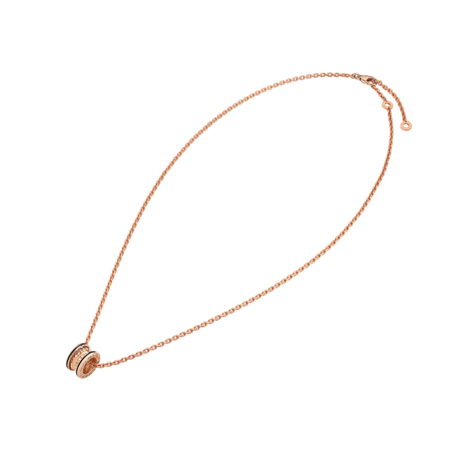 Pre-Owned Bvlgari B.zero1 Rock 18K rose gold necklace with studs and black ceramic inserts.