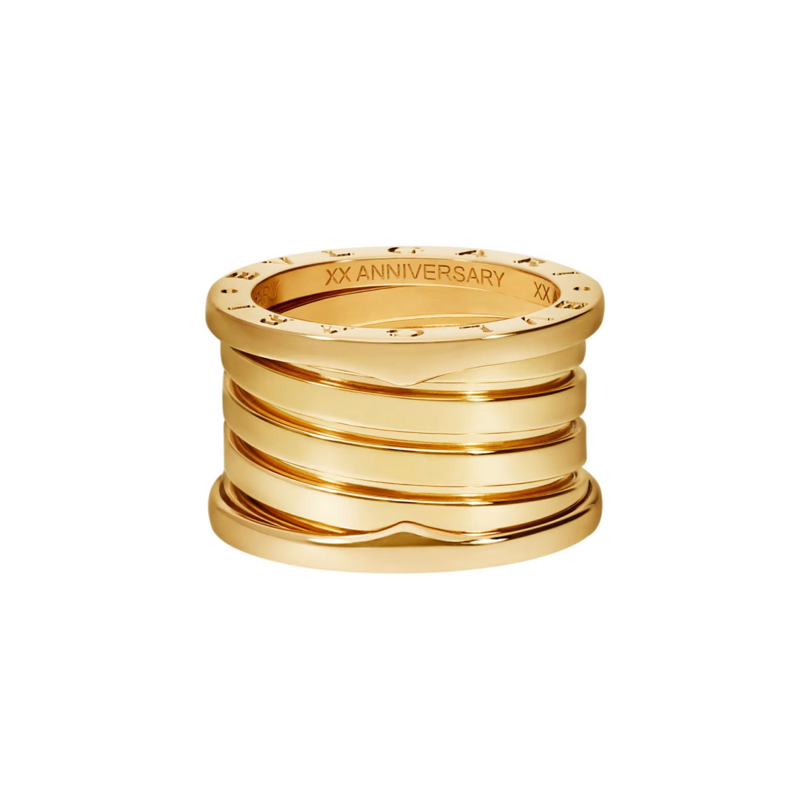 Crafted in 18K yellow gold, the five-band B.zero1 XXth Anniversary ring channels the timeless aesthetics of Roman architecture through a sculptural and contemporary silhouette. Powerful and refined, it stands as a striking expression of Bvlgari’s creative vision and relentless pursuit of innovation.