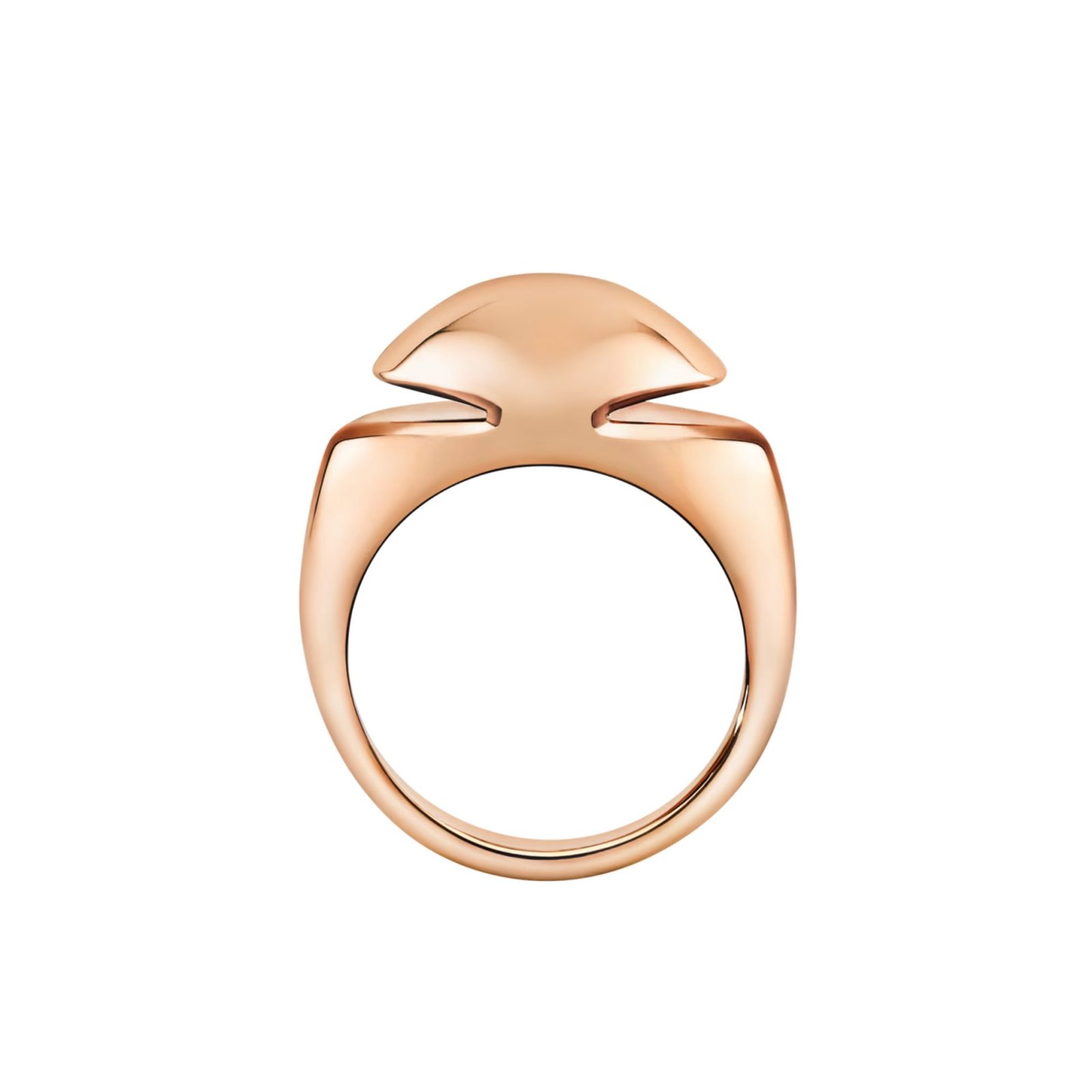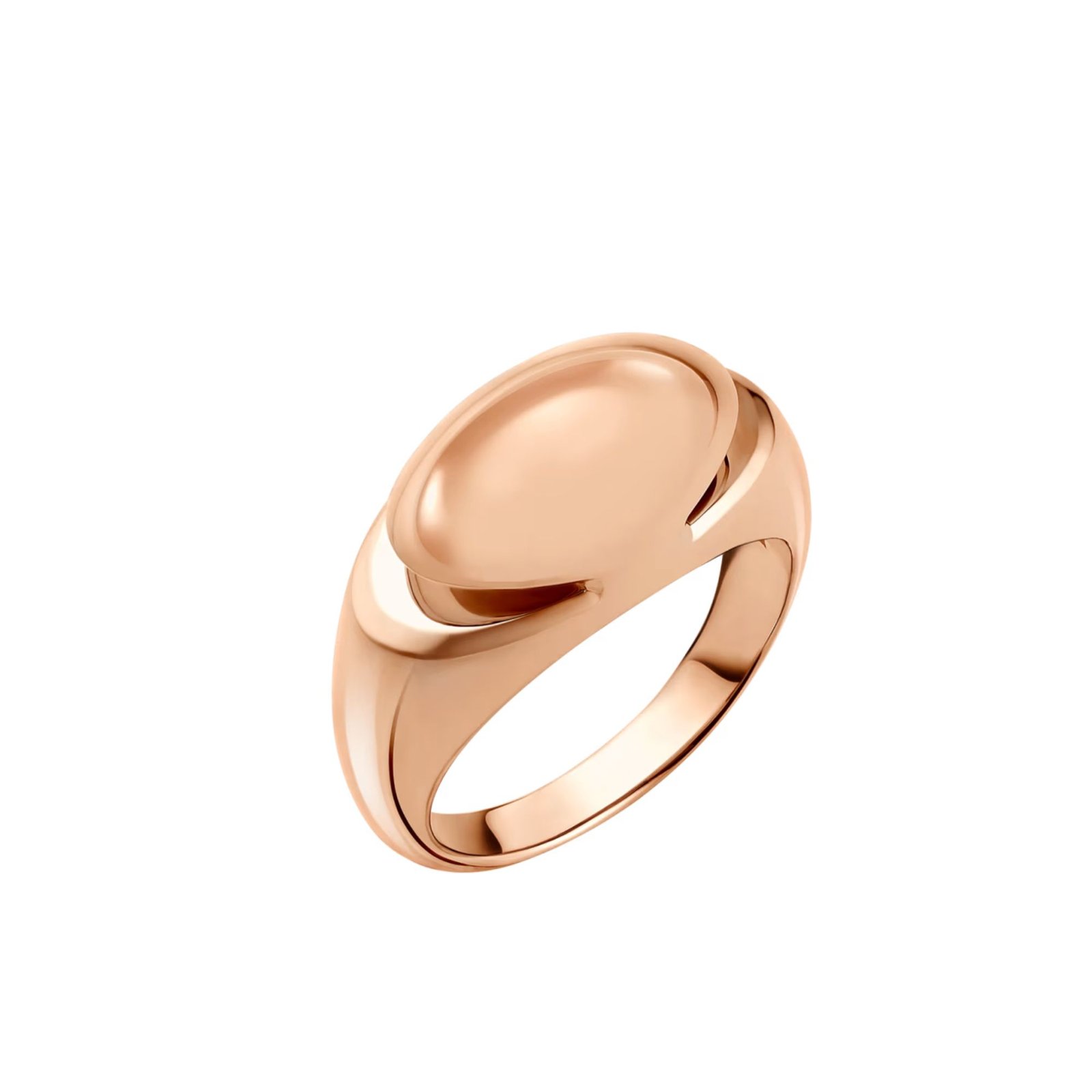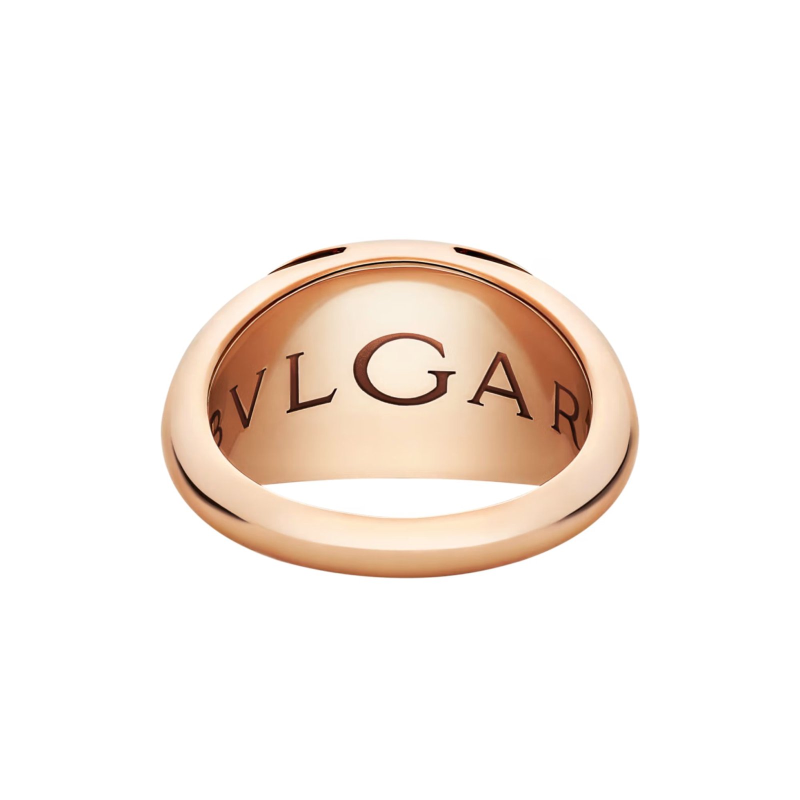 Inspired by the smooth cabochon cut — an iconic Bvlgari signature since the 1950s celebrated for enhancing the natural charm of gemstones — the ring reinterprets this aesthetic through radiant rose gold. Its softly contoured silhouette highlights the organic purity and warmth of the metal, resulting in a bold yet timeless statement of contemporary elegance.