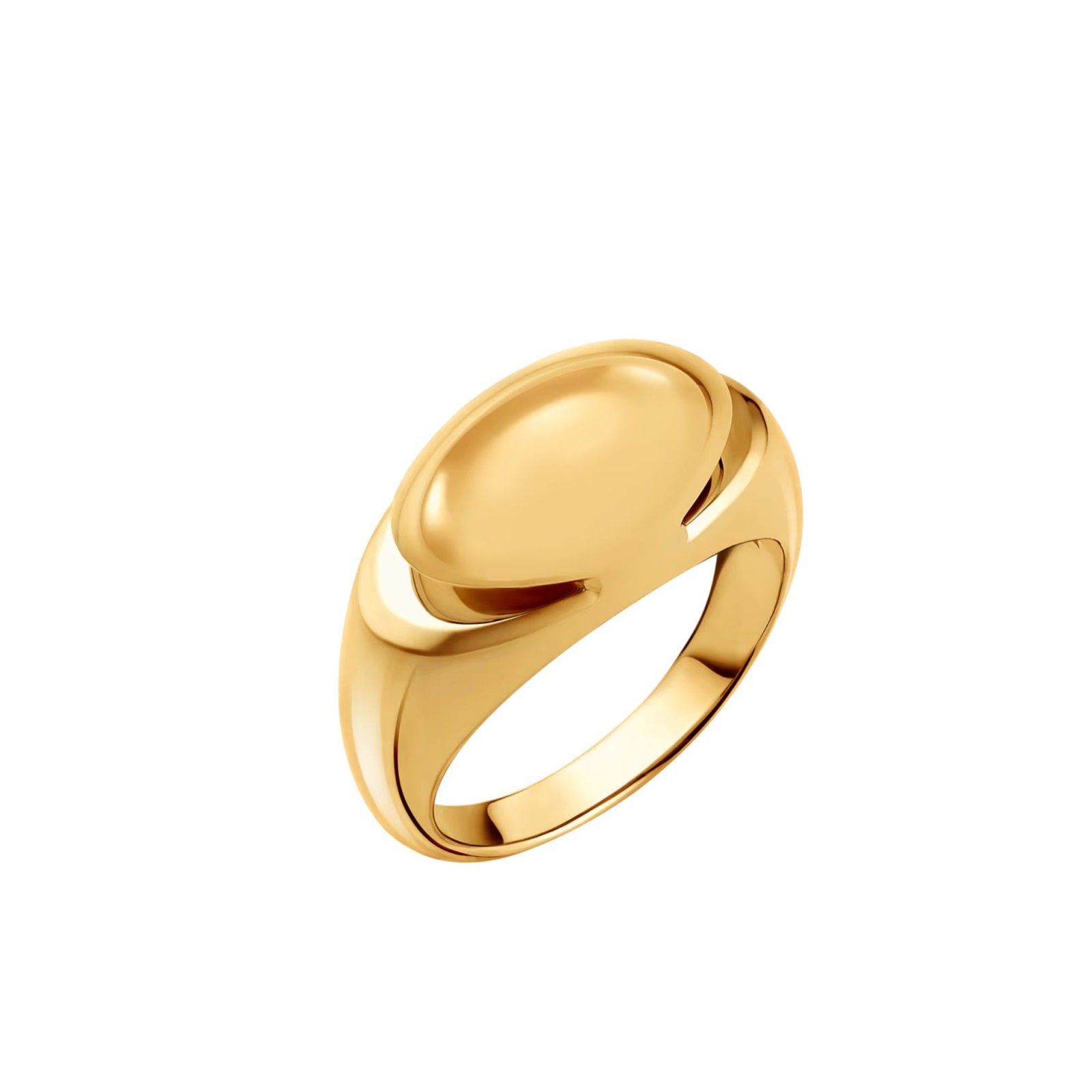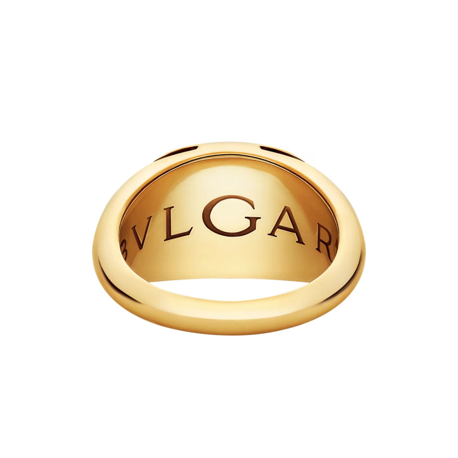 Inspired by the smooth cabochon cut — an iconic Bvlgari signature since the 1950s known for enhancing the natural charm of gemstones — the ring reinterprets this aesthetic through pure gold. Its softly contoured silhouette reveals the organic purity and radiant depth of the metal, resulting in a bold yet timeless statement of modern elegance.