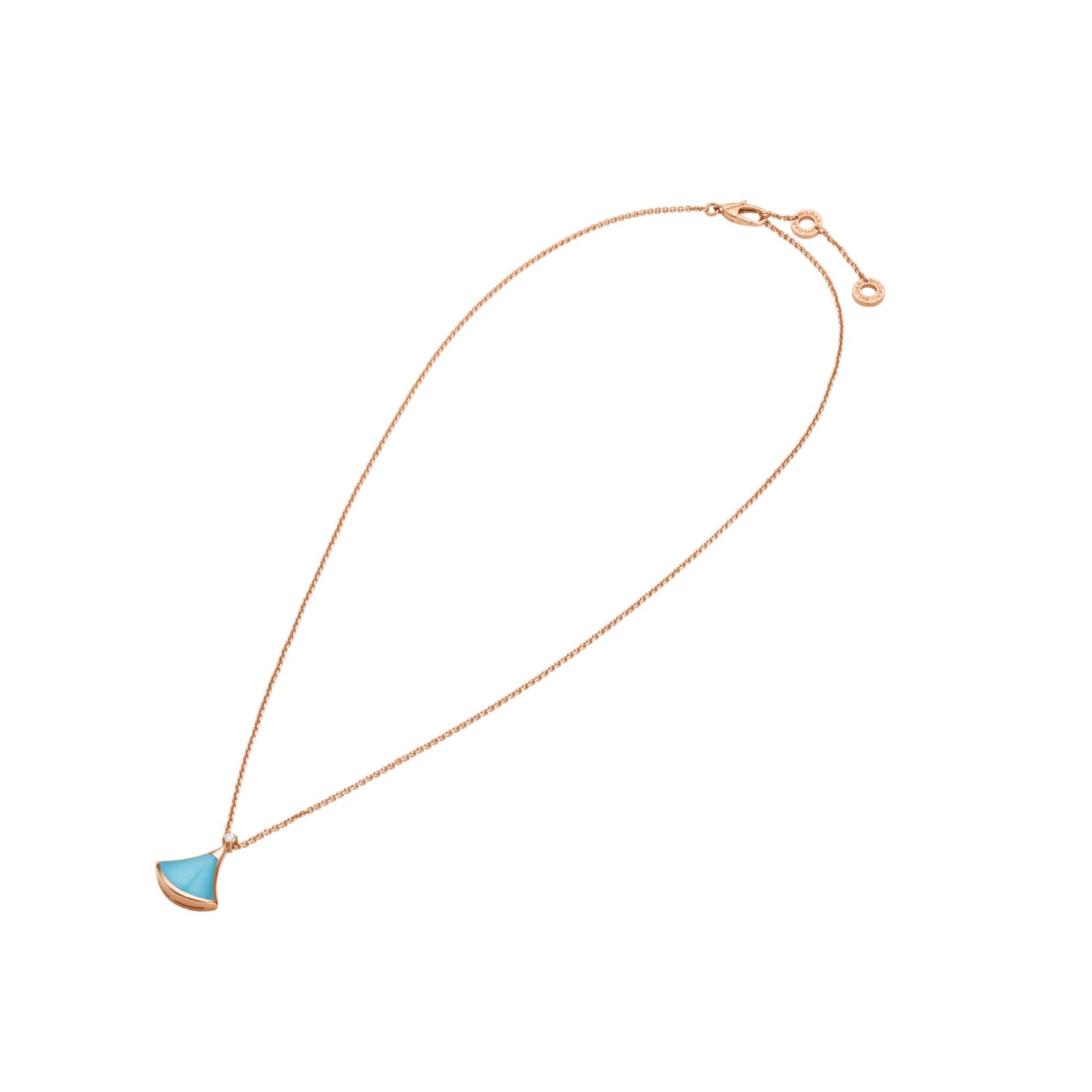 Pre-Owned Bvlgari Divas’ Dream 18K rose gold necklace set with turquoise and one diamond.