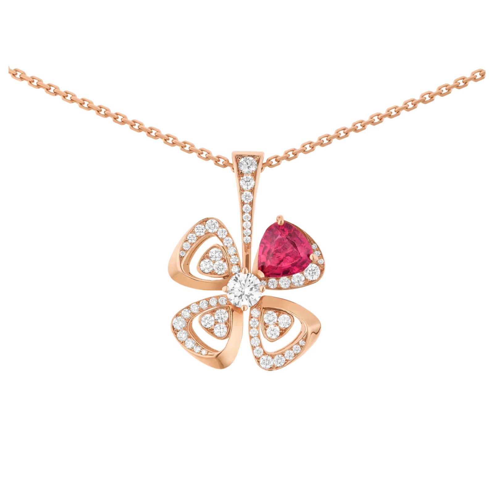 Pre-Owned Bvlgari Fiorever 18K rose gold necklace with rubellite and brilliant-cut diamonds.