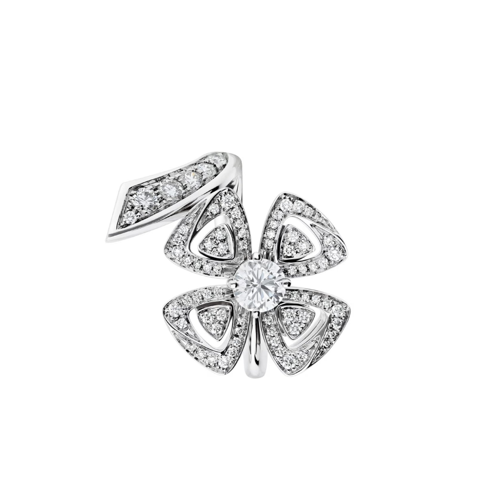 Pre-Owned Bvlgari Fiorever Ring in 18K White Gold Set with a Central Round Brilliant-Cut Diamond and Pavé Diamonds