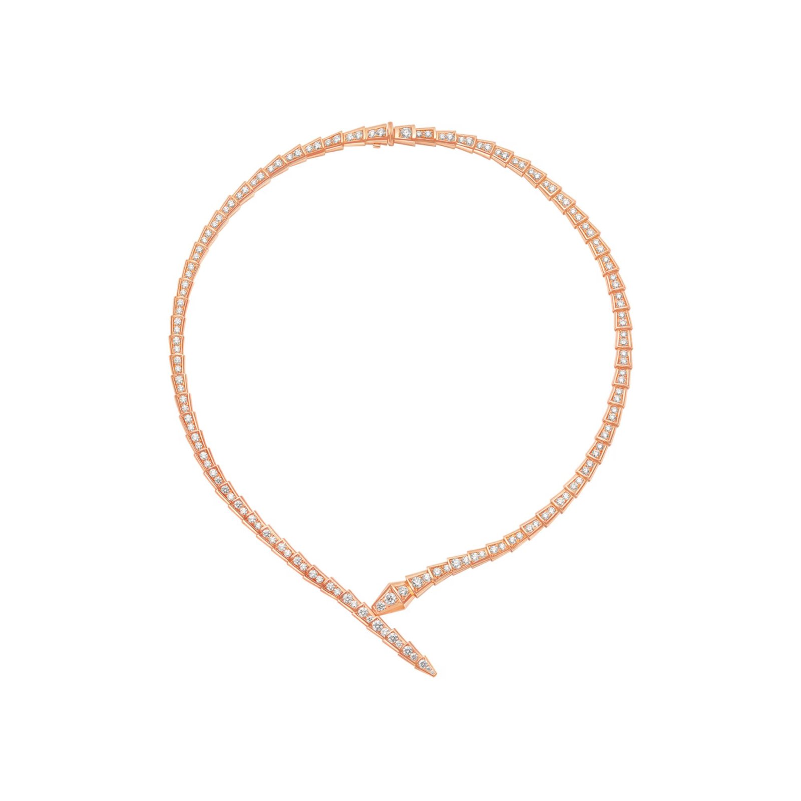 Pre-Owned Bvlgari Serpenti Viper 18K rose gold necklace set with full pavé diamonds.