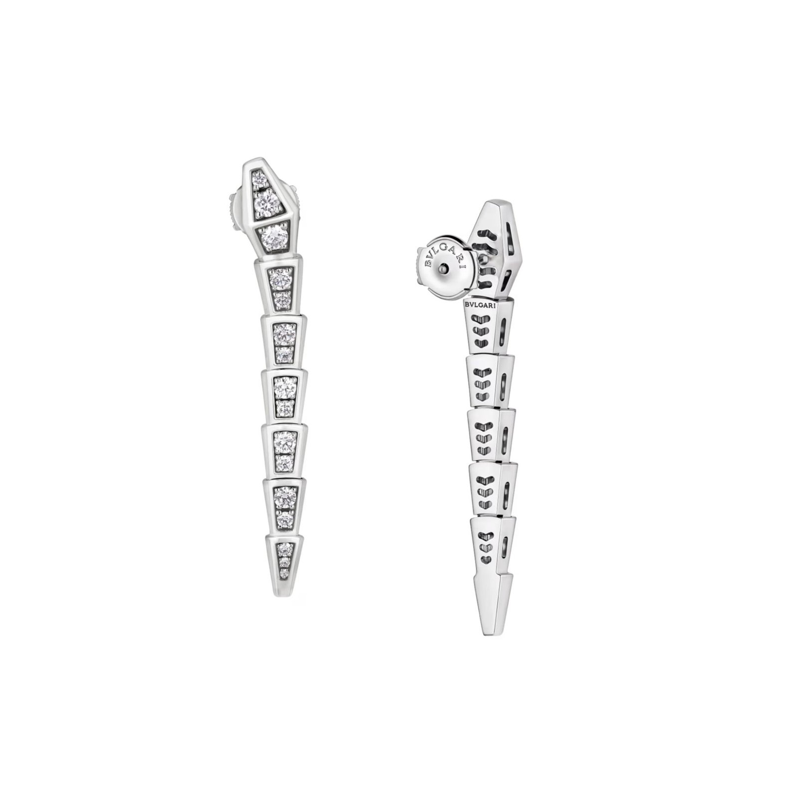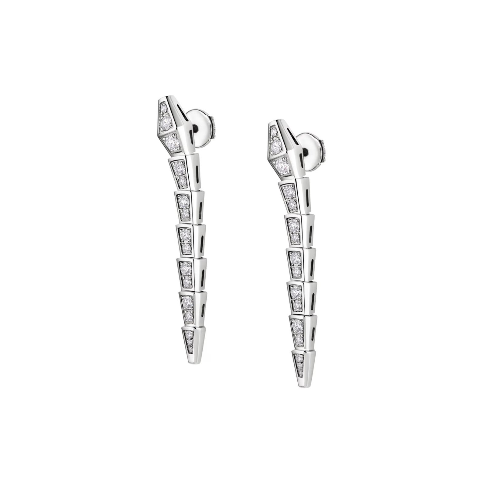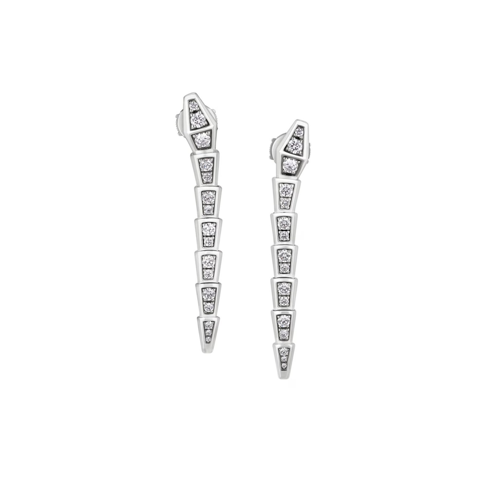 Serpenti Viper earrings in 18K white gold with full pavé diamonds.