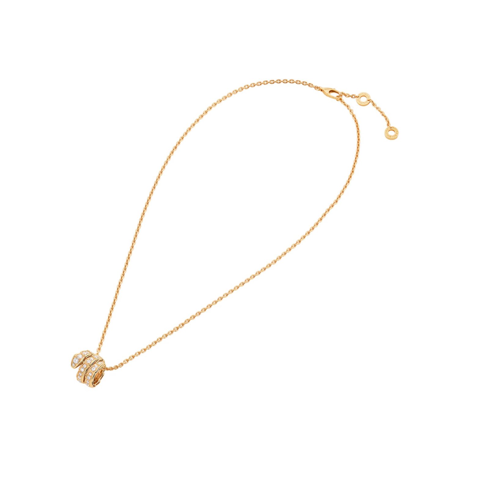 Serpenti Viper 18K yellow gold pendant necklace set with full pavé diamonds.