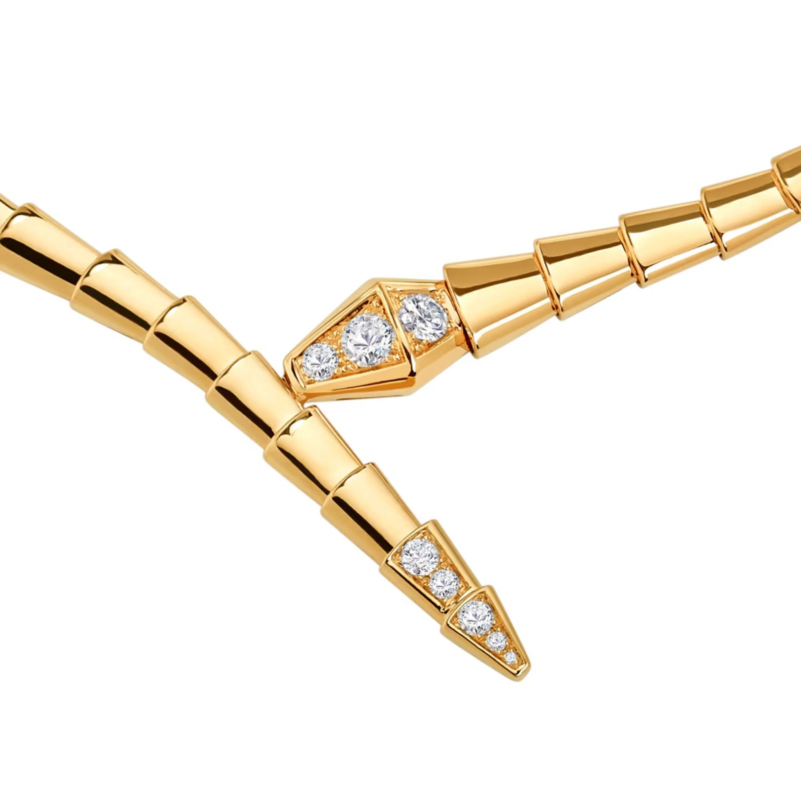Capturing the powerful and ever-evolving nature of the mythical serpent, this magnetic creation symbolizes transformation, strength, and self-confidence. The demi pavé diamond detailing enhances the sculptural curves of the piece, while the warmth of yellow gold accentuates its bold and timeless character. Versatile and effortless to style, the necklace embodies the dynamic spirit of the Serpenti collection.