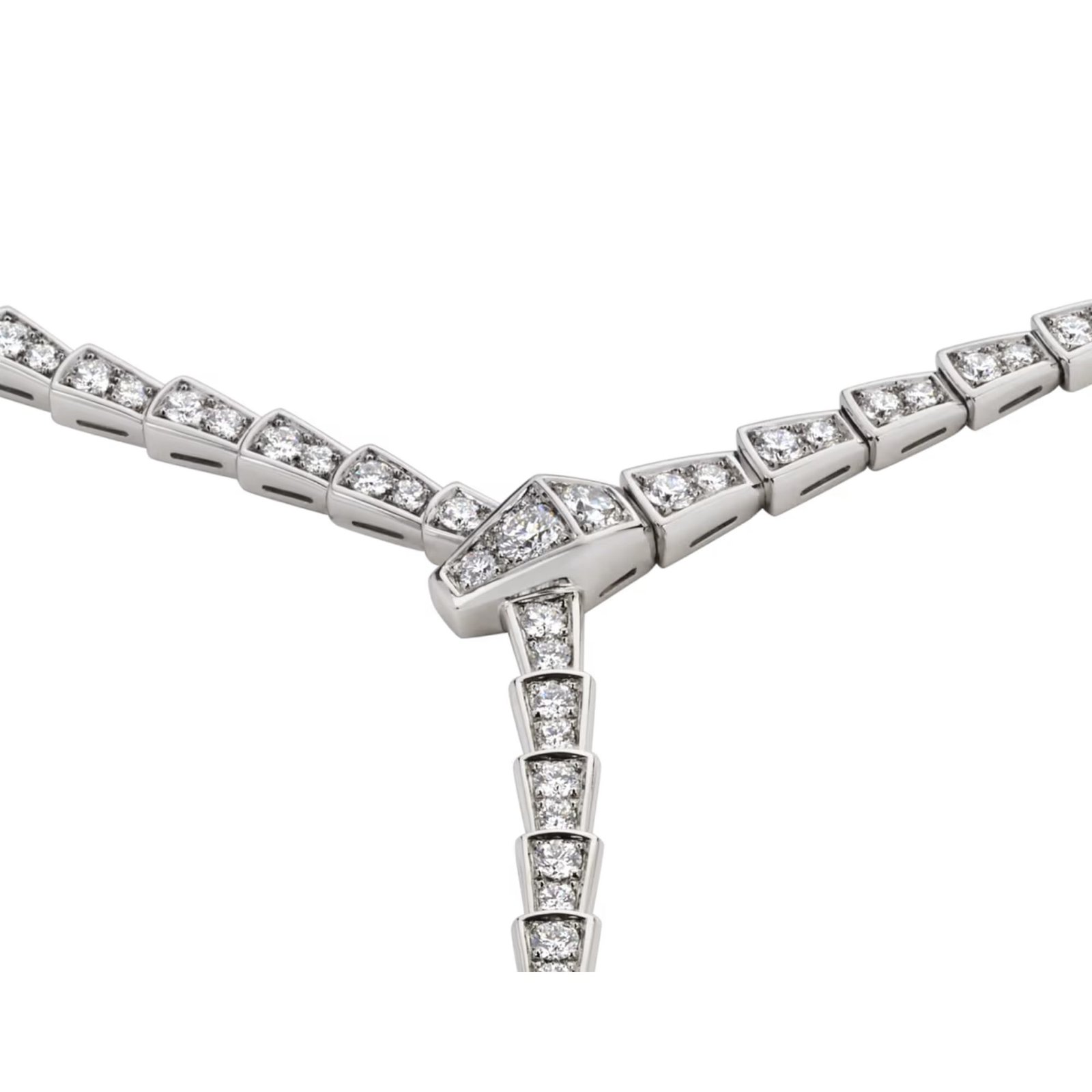 Pre-Owned Bvlgari Serpenti Viper slim 18K white gold necklace set with full pavé diamonds.