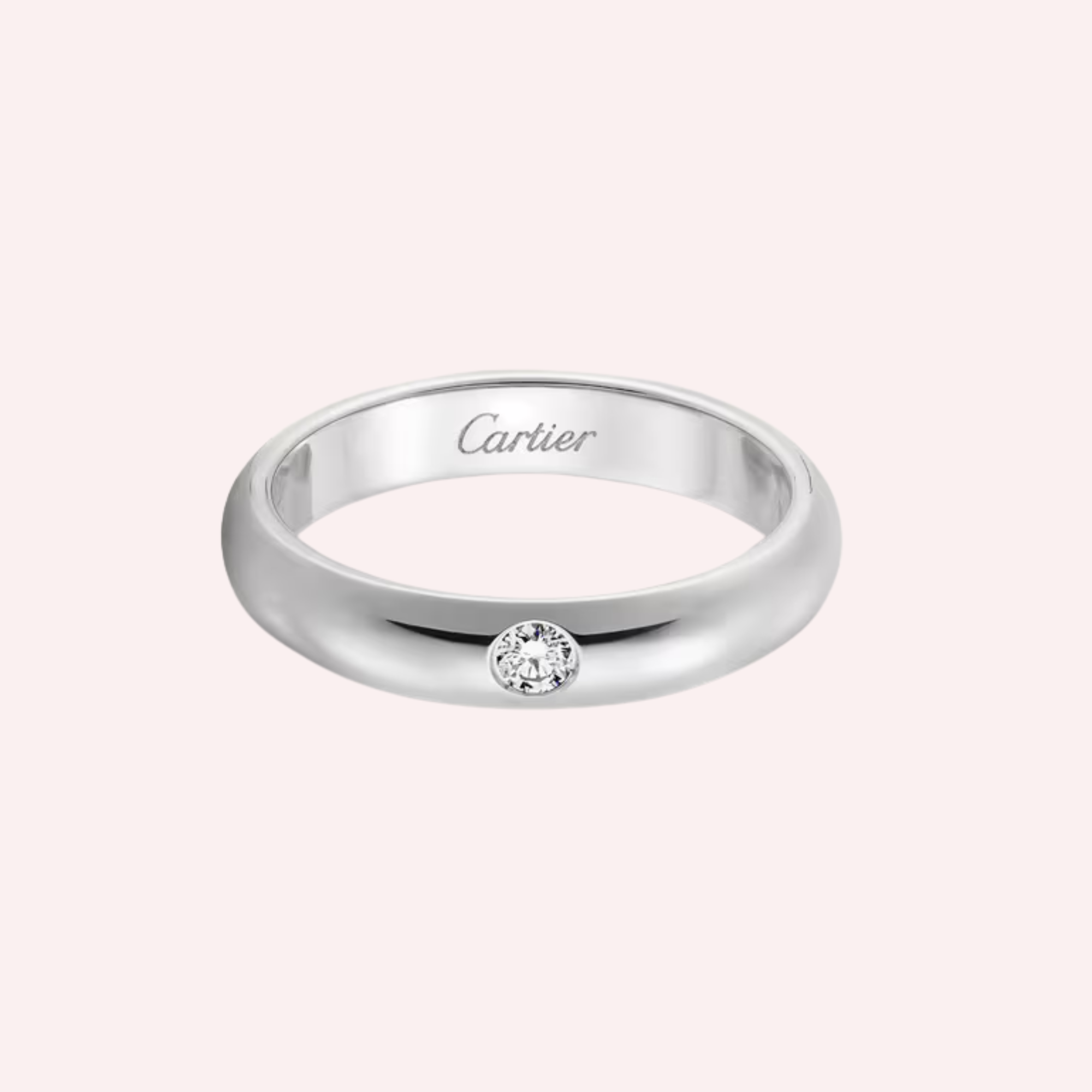 Pre-Owned Cartier 1895 wedding band in platinum, set with one brilliant-cut diamond and a refined 3.5 mm width.