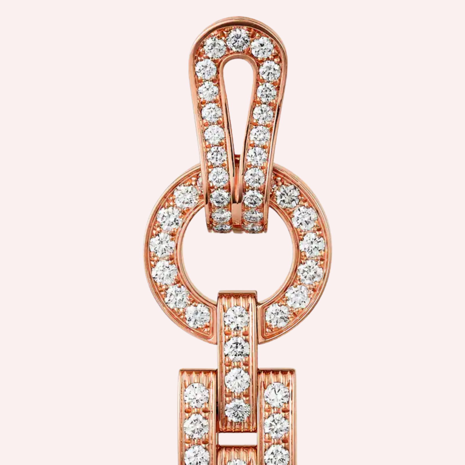 Crafted in warm 18K rose gold (750/1000), these Agrafe earrings are exquisitely pavé-set with 79 brilliant-cut diamonds, totaling 2.77 carats. The meticulous diamond setting enhances the flowing lines of the design, creating exceptional brilliance while preserving a sense of lightness and motion. The result is a striking yet elegant piece that embodies modern sophistication and timeless craftsmanship.