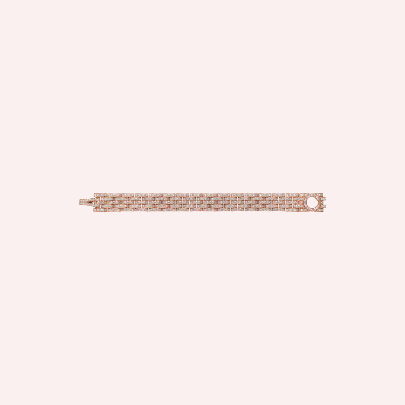 Expertly crafted in warm 18K rose gold (750/1000), the bracelet is lavishly paved with 459 brilliant-cut diamonds totaling an impressive 10.69 carats (for size 17). Each diamond is meticulously set to enhance the bracelet’s airy, mesh-like silhouette, creating an extraordinary play of light and brilliance. A true statement of luxury, this masterpiece embodies both modern sophistication and timeless allure.
