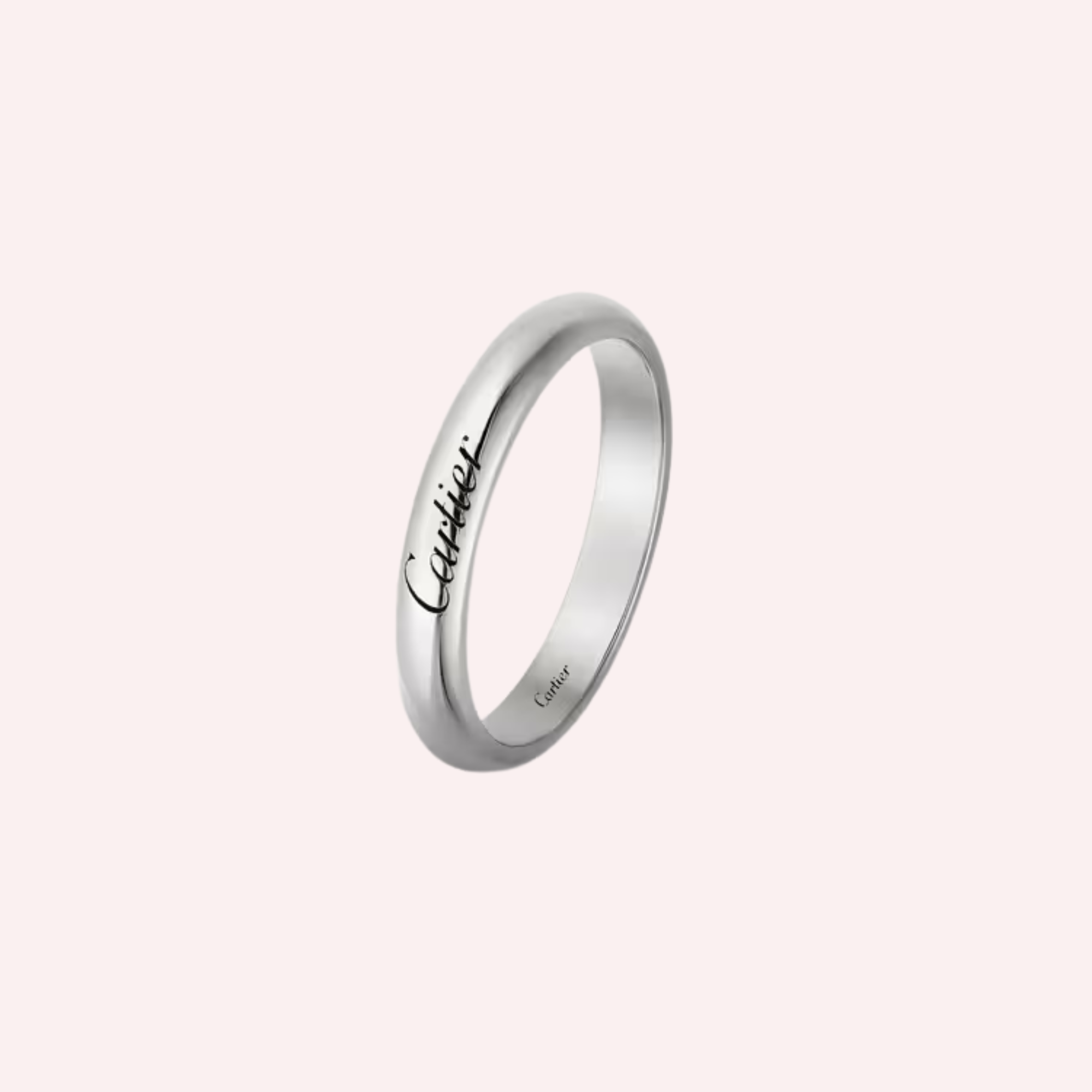 Expertly crafted in platinum 950/1000, the band features a polished finish and a refined 3 mm width. Designed in size 52, its luminous white sheen and minimalist profile create a sophisticated expression of modern luxury, making it a timeless symbol of enduring love and devotion.
