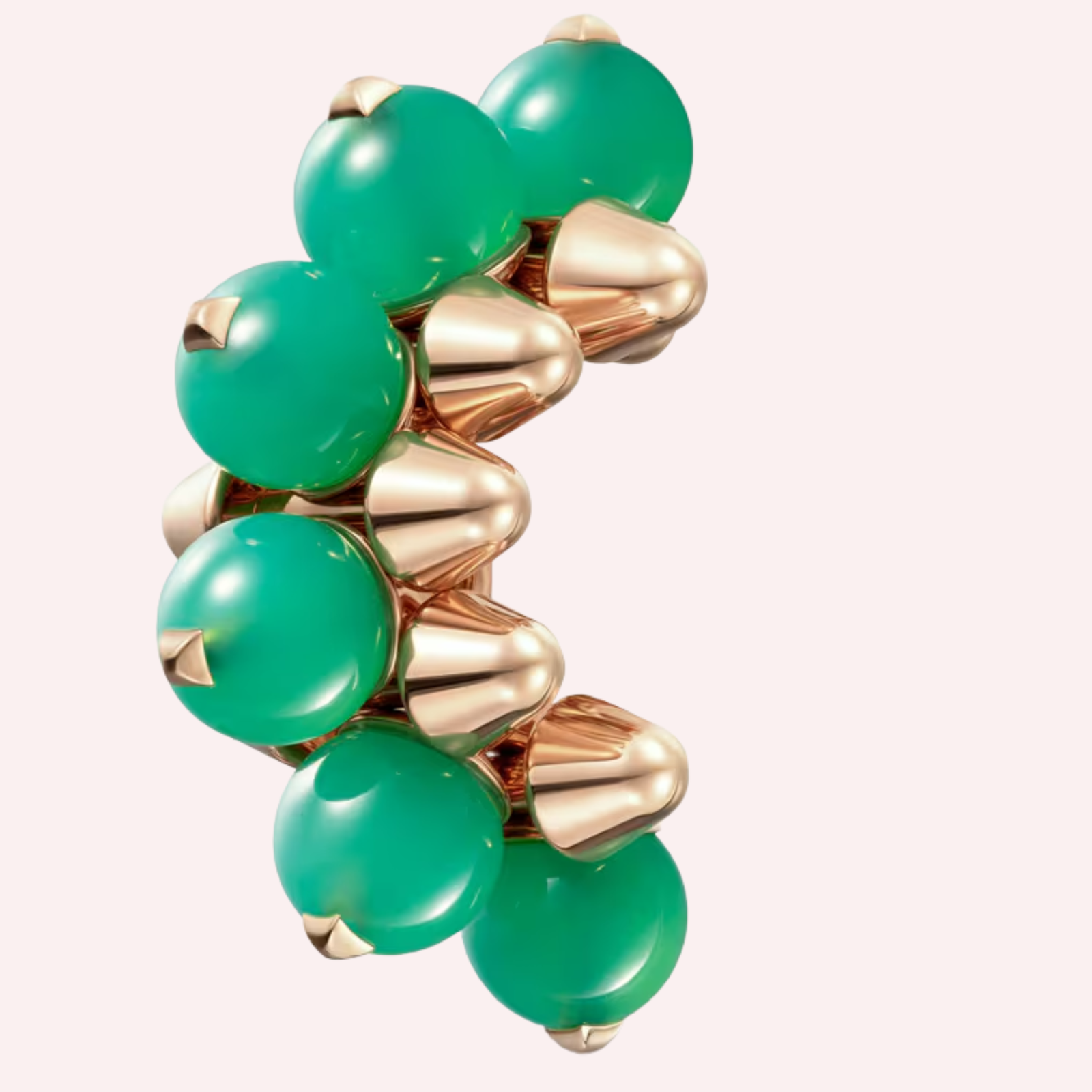 Crafted in luminous 18K rose gold (750/1000), this extra-large single earring is accented with vibrant chrysoprase, introducing a refined pop of color to the sculptural form. Measuring 17.7 mm in width with an outer diameter of 36.2 mm, the piece is designed to stand out with confident sophistication, whether worn alone or styled as part of a curated ear look.