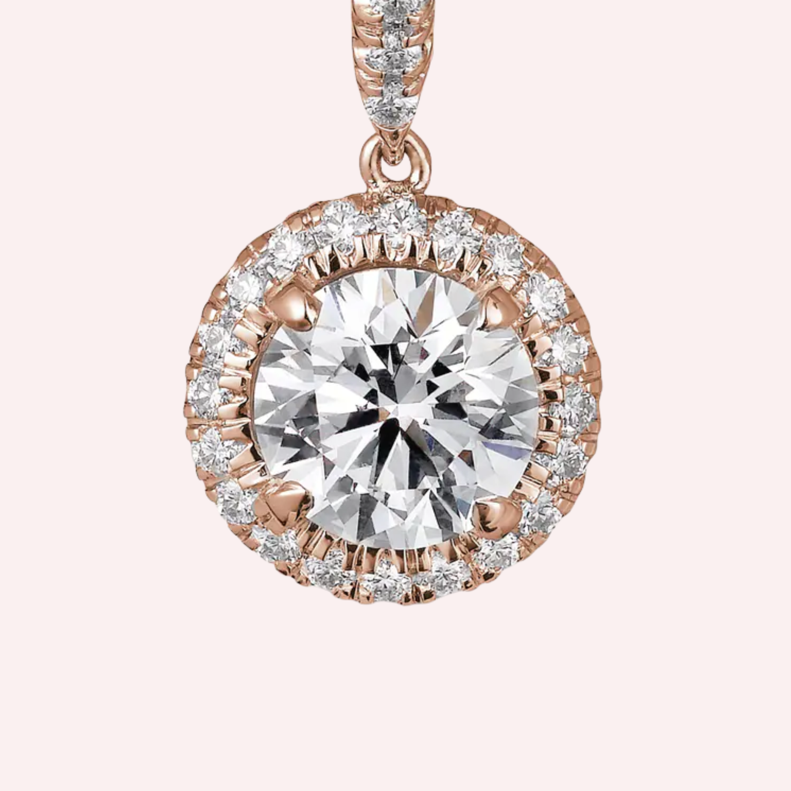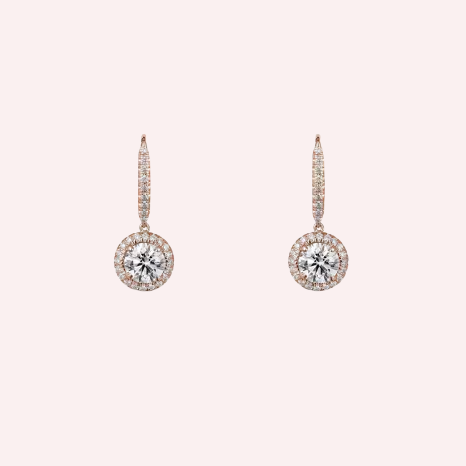 Crafted in warm 18K rose gold (750/1000), these sleeper earrings are each set with a brilliant-cut diamond, available in carat weights ranging from 0.50 to 0.59 carats, 1.00 to 1.15 carats, and 1.50 to 1.69 carats. Each center stone is encircled by a delicately pavé-set halo of brilliant-cut diamonds, amplifying light, depth, and radiance. The sleeper design adds gentle movement, lending the earrings an effortlessly elegant presence.