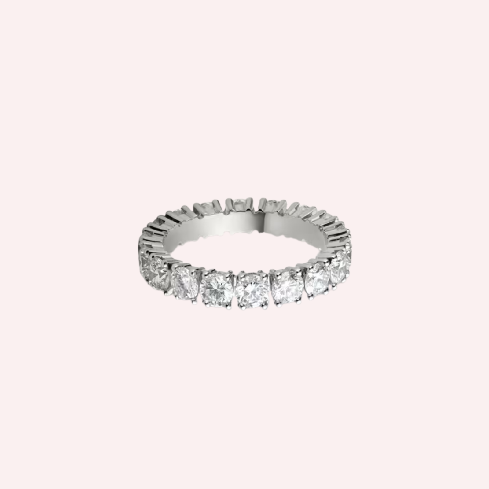 Expertly crafted in platinum 950/1000, the band features a distinguished 4.1 mm width and is pavé-set with 18 brilliant-cut diamonds totaling 2.56 carats (for size 52). The substantial diamond presence delivers extraordinary sparkle, creating a breathtaking display of light and a truly luxurious statement of devotion.