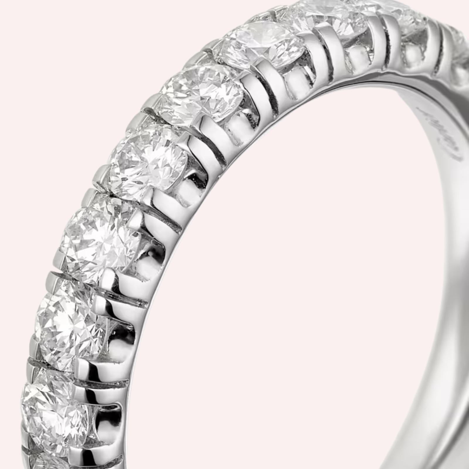 Expertly crafted in platinum 950/1000, the band features a refined 3.5 mm width and is semi-pavé set with 14 brilliant-cut diamonds totaling 0.94 carats (for size 52). The generous diamond presence delivers exceptional brilliance, creating a striking balance between modern glamour and classic refinement.