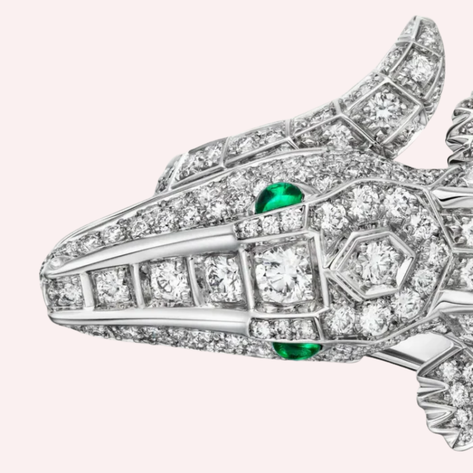 Expertly crafted in luminous 18K white gold, the ring is accented with vibrant emeralds and meticulously pavé-set with 309 brilliant-cut diamonds totaling 2.07 carats (for size 52). The sculptural silhouette, measuring up to 20 mm in maximum width, showcases Cartier’s exceptional mastery of stone selection, volume, and proportion. Refined yet commanding, this ring stands as a striking statement of elegance and creative freedom.