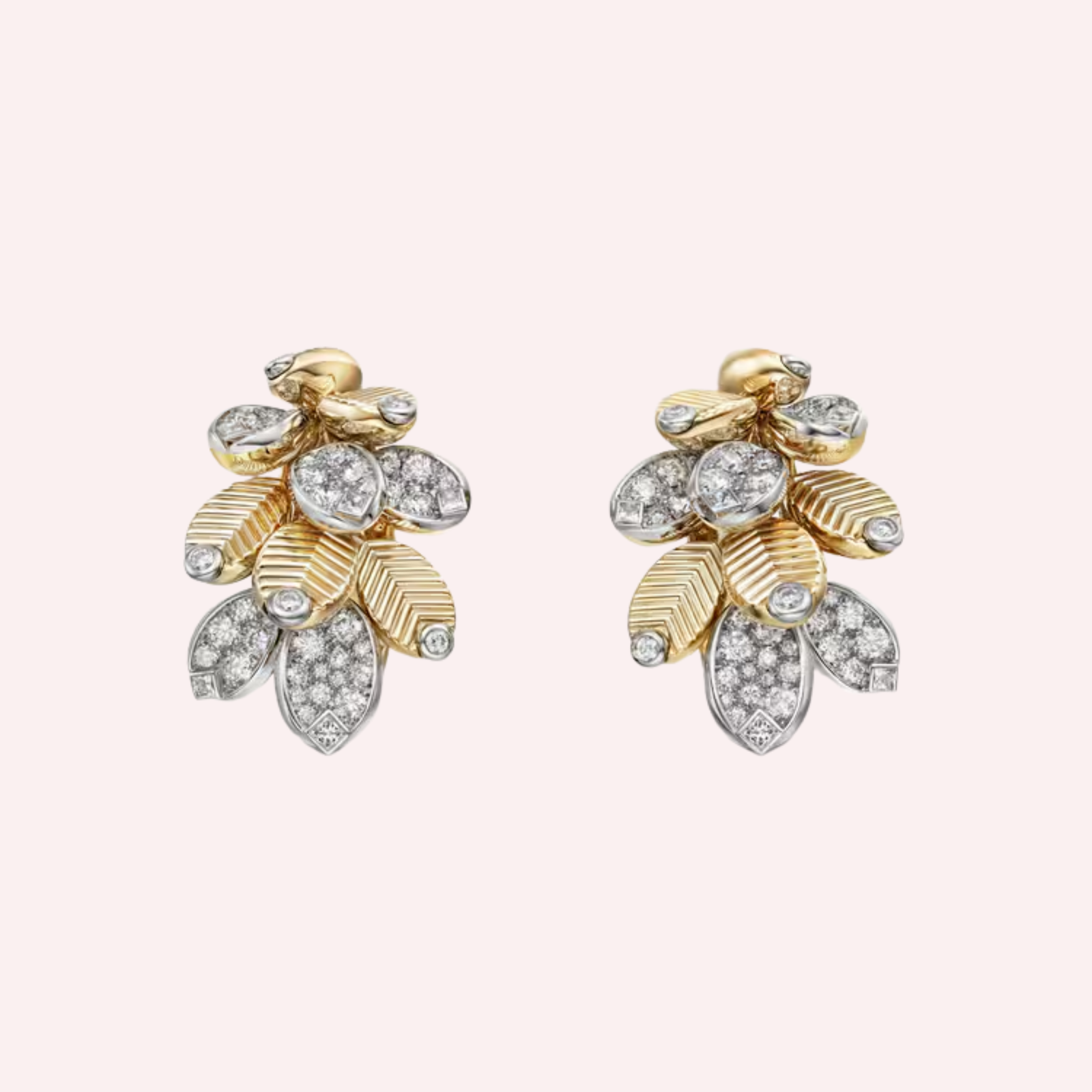 Crafted in a refined combination of 18K yellow gold and platinum, the earrings are semi-pavé set with 10 princess-cut and 94 brilliant-cut diamonds totaling 2.35 carats. The interplay of precise geometry and soft curves, enhanced by radiant diamond brilliance, reflects Cartier’s exceptional craftsmanship and enduring elegance.