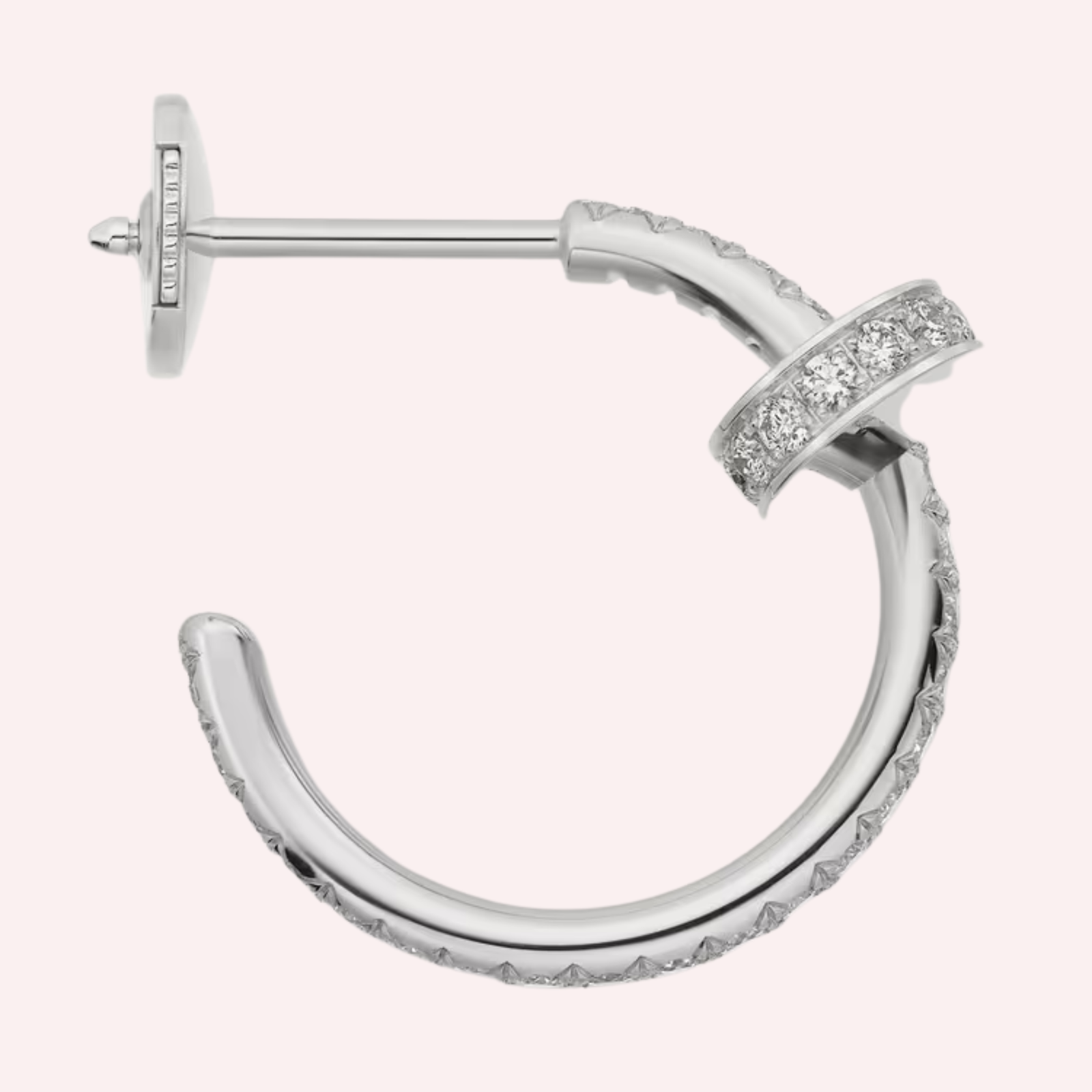 Pre-Owned Cartier Juste un Clou small pavé hoop earrings in 18K white gold, each set with 36 brilliant-cut diamonds totaling 0.51 carat.