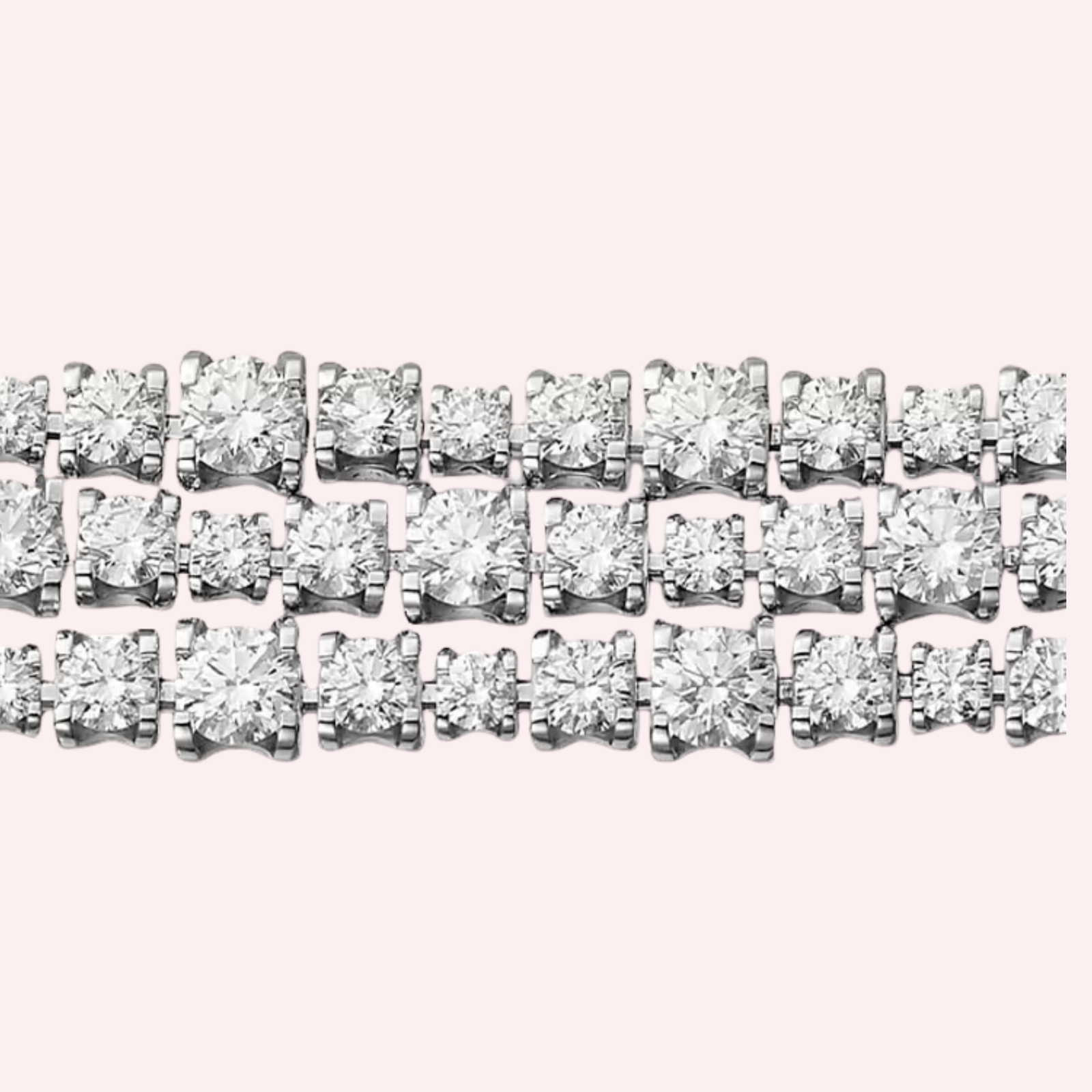 Expertly crafted in luminous 18K white gold (750/1000), the bracelet is set with 144 brilliant-cut diamonds totaling an impressive 12.22 carats. Each diamond is meticulously placed to create a seamless flow of radiance, enhancing the bracelet’s sleek and powerful silhouette. A striking statement of understated luxury, this piece is designed for those who appreciate exceptional craftsmanship and high jewelry artistry.
