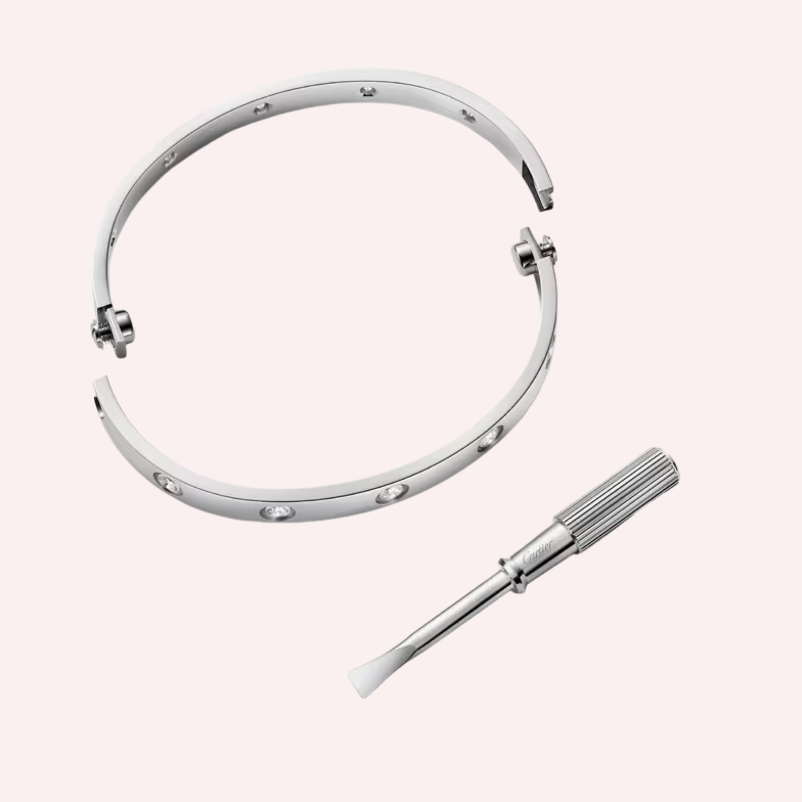 This refined model is elegantly set with 10 brilliant-cut diamonds totaling 0.96 carat, adding a subtle yet radiant brilliance to its timeless silhouette. Measuring 6.1mm in width, the bracelet features a secure fastening system with two functional screws and is accompanied by its original screwdriver, preserving the authenticity and integrity of the design.