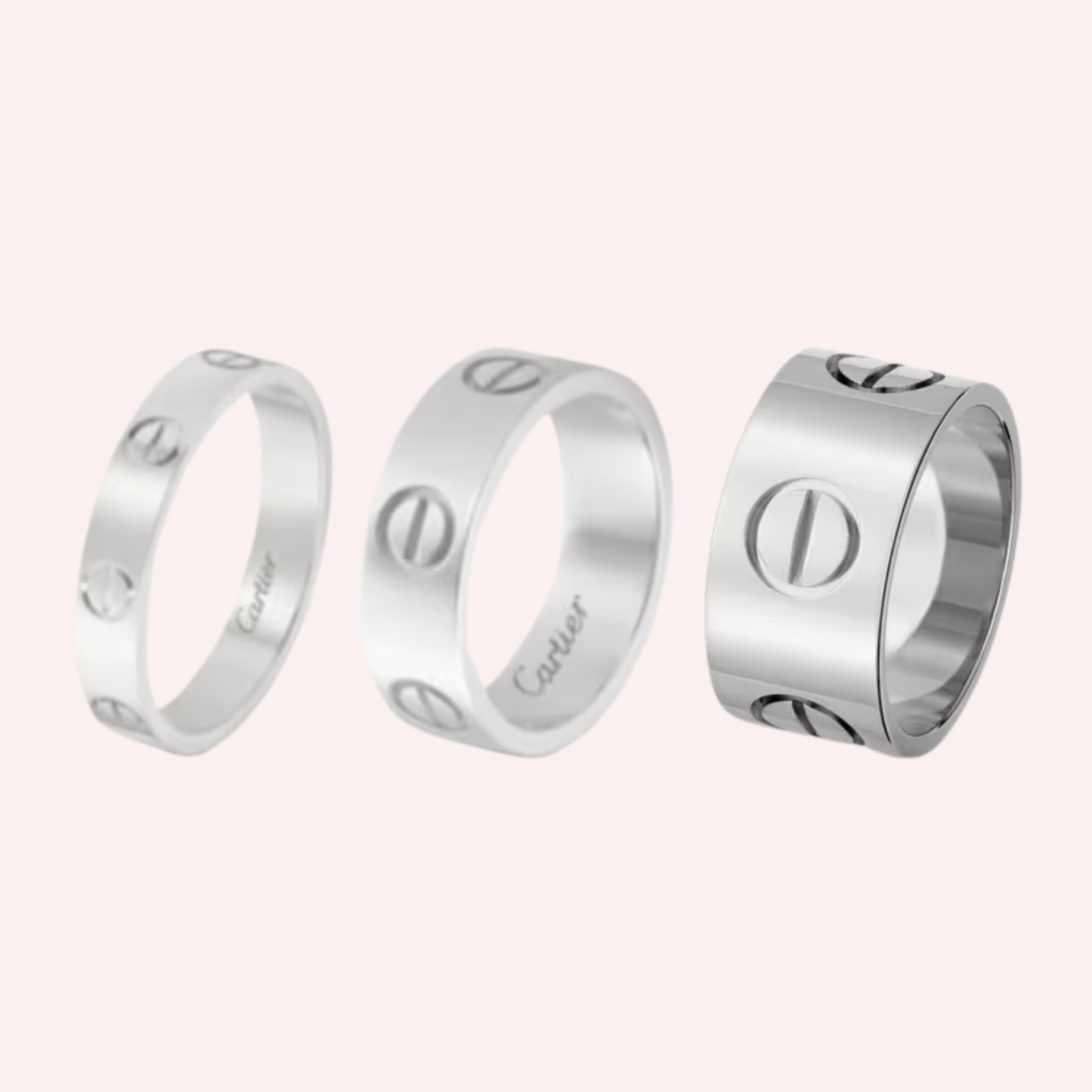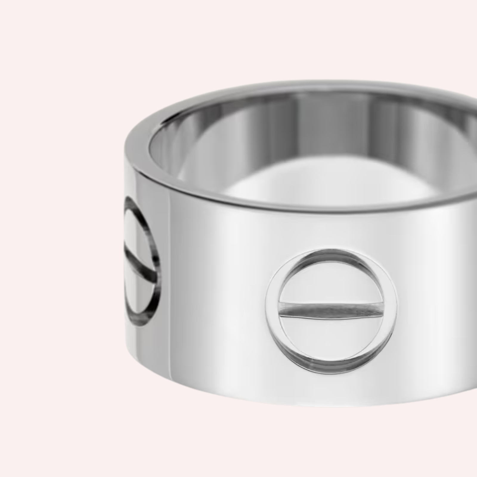 Crafted in luminous 18K white gold, the large model features a bold, architectural silhouette that amplifies the strength and clarity of the LOVE design. With an impressive width of 11 mm, the ring makes a confident statement while maintaining Cartier’s signature balance of refinement, modernity, and exceptional craftsmanship.
