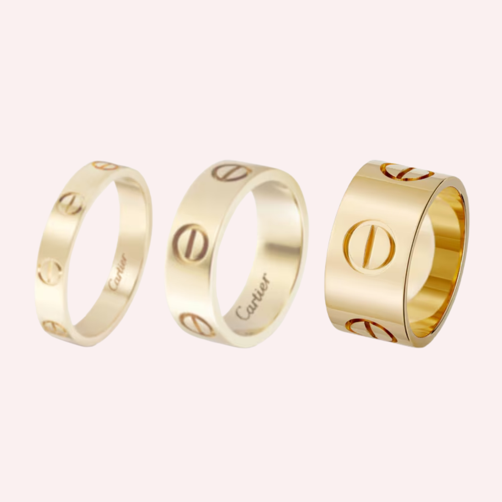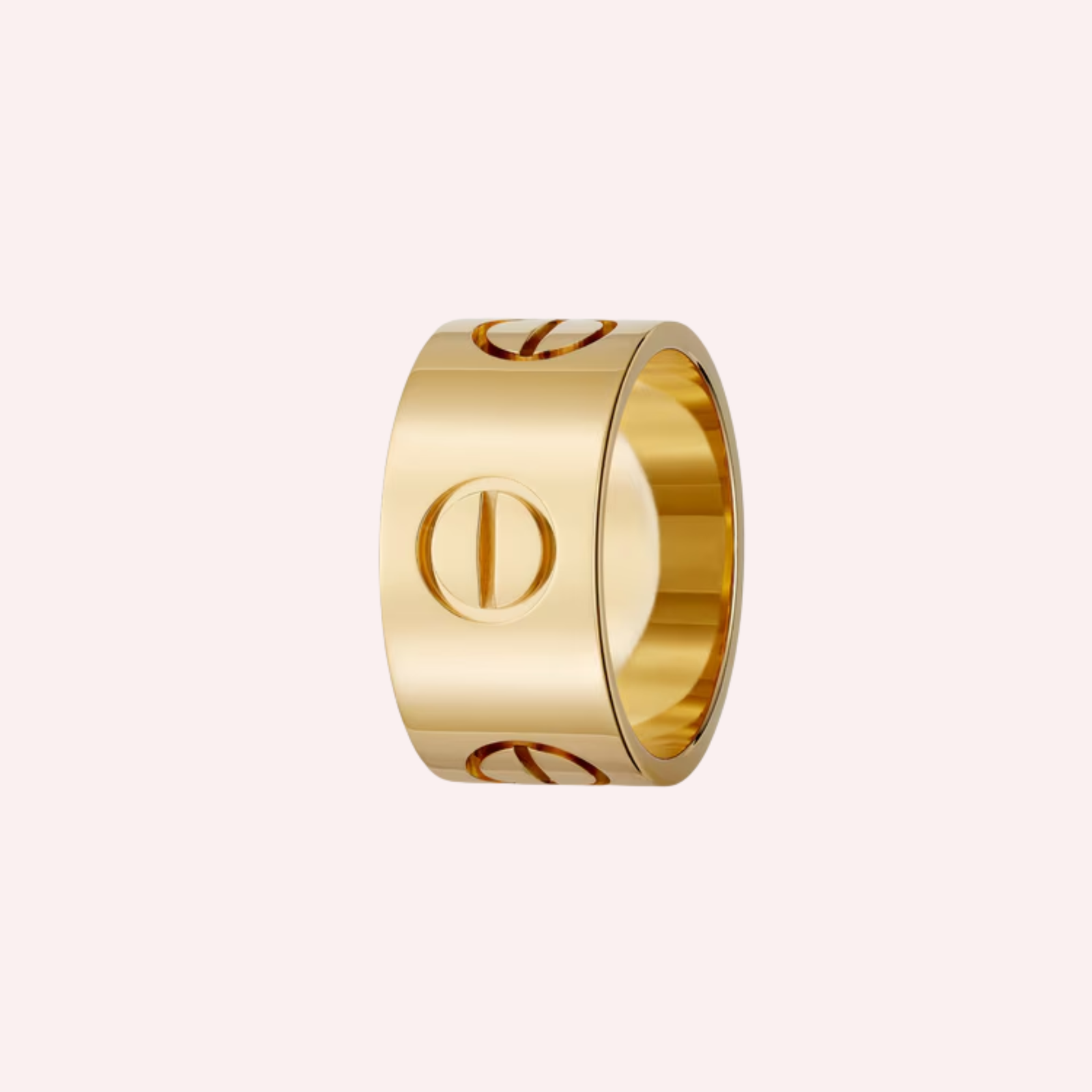 Crafted in radiant 18K yellow gold, the large model features a commanding architectural silhouette that amplifies the strength and clarity of the LOVE design. With an impressive width of 11 mm, the ring makes a confident statement while preserving Cartier’s signature balance of refinement, modernity, and exceptional craftsmanship.