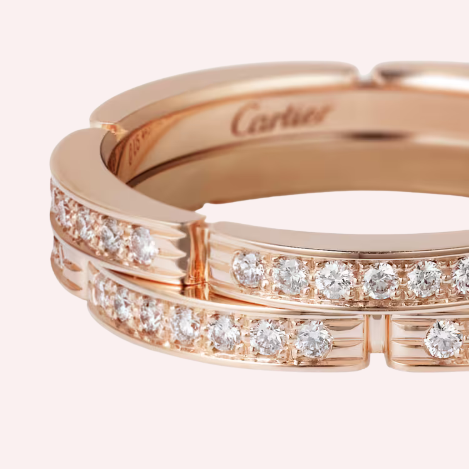 Pre-Owned Cartier Maillon Panthère double row half-paved wedding band in 18K rose gold, featuring a bold chain-inspired design accented with diamonds.