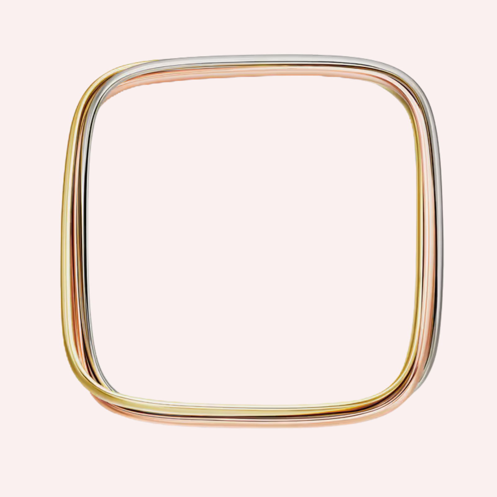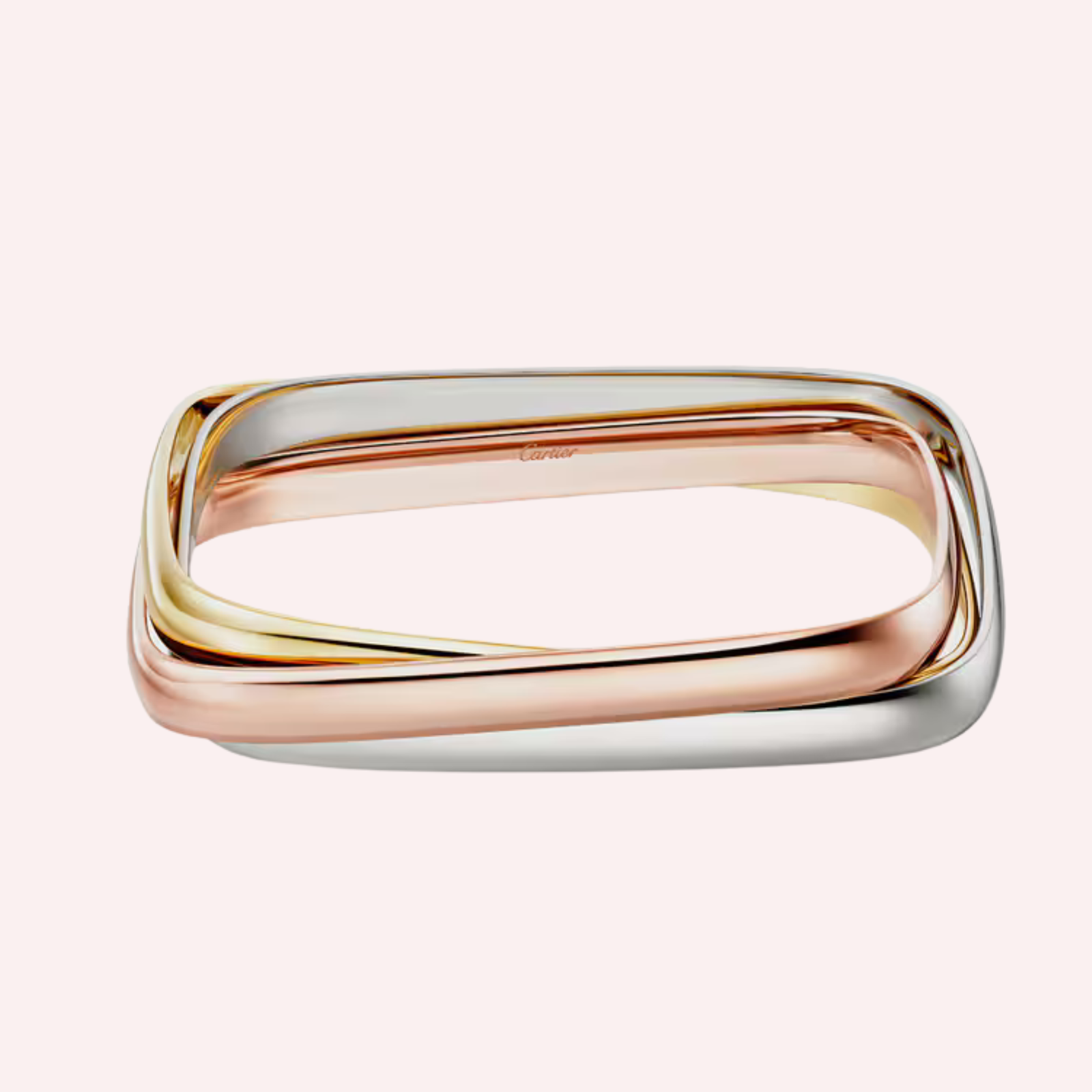 Crafted in a harmonious trio of 18K white gold, 18K rose gold, and 18K yellow gold (750/1000), the bracelet features three intertwined moving rings that glide effortlessly around the wrist. Each ring measures 6.3 mm in width with a refined thickness of 2.0 mm (for size 17), creating a bold yet balanced silhouette. The cushion-shaped design enhances its sculptural appeal, making this bracelet a timeless expression of sophistication and heritage craftsmanship.