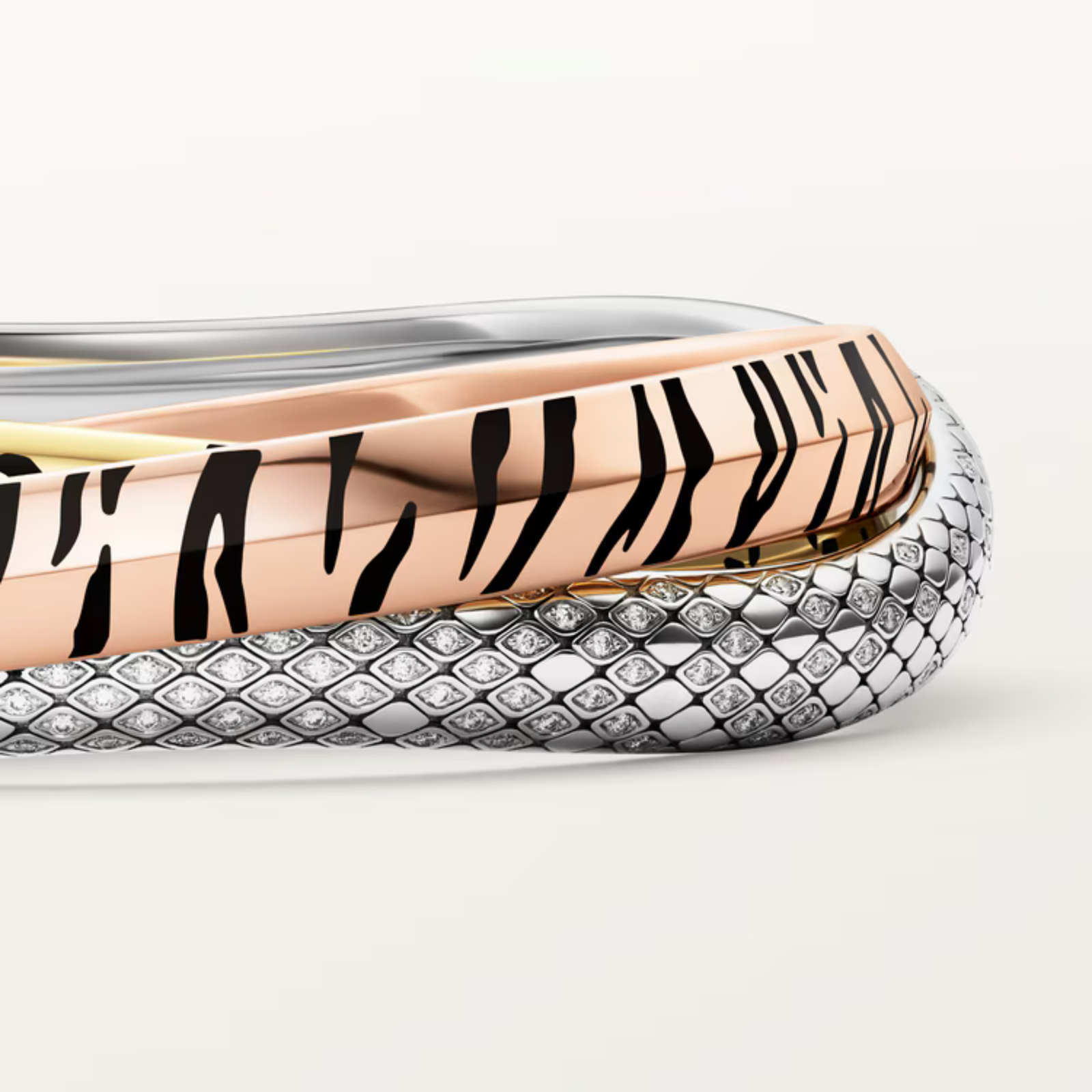This Pre-Owned Cartier Trinity lacquer bracelet is a bold and contemporary interpretation of the Maison’s iconic design, originally created by Louis Cartier in 1924. Celebrated for its daring chromatic harmony, fluid movement, and symbolic power, the Trinity collection remains a timeless emblem of modern jewelry.